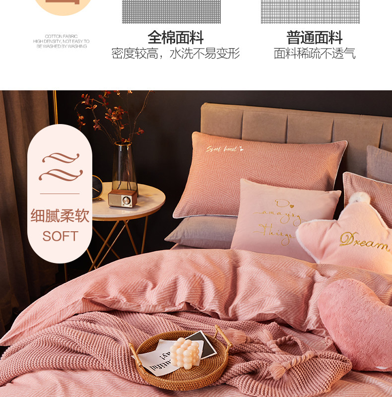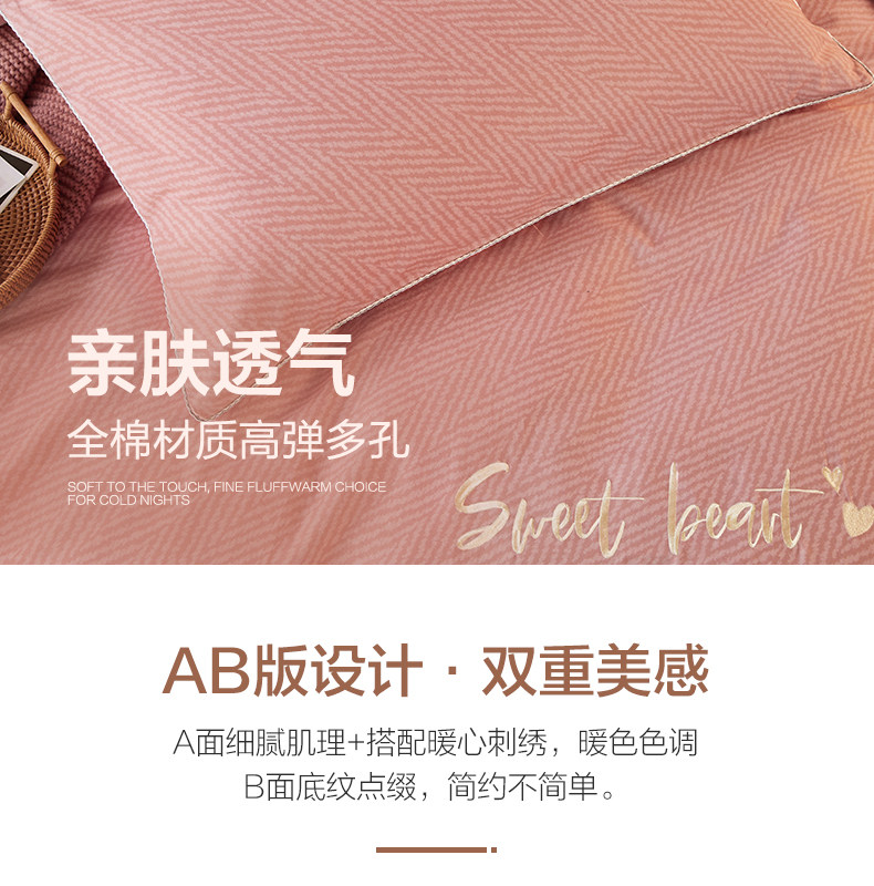 | Ширина кровати: | Три -набор для кровати применимо к 1,2 млн. С 150*210 стеганым одеялом, Четырехэтажный набор применимо к 1,5 -метровым кроватям и рекомендуется с 200*230 одеялом, Набор из четырех частей применим к 1,8-2M-кроватям, с 220*240 ядрами |