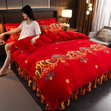 Красные свадебные туфли, комплект, фланелевый двусторонний антистатический коралловый пододеяльник, 4 предмета
