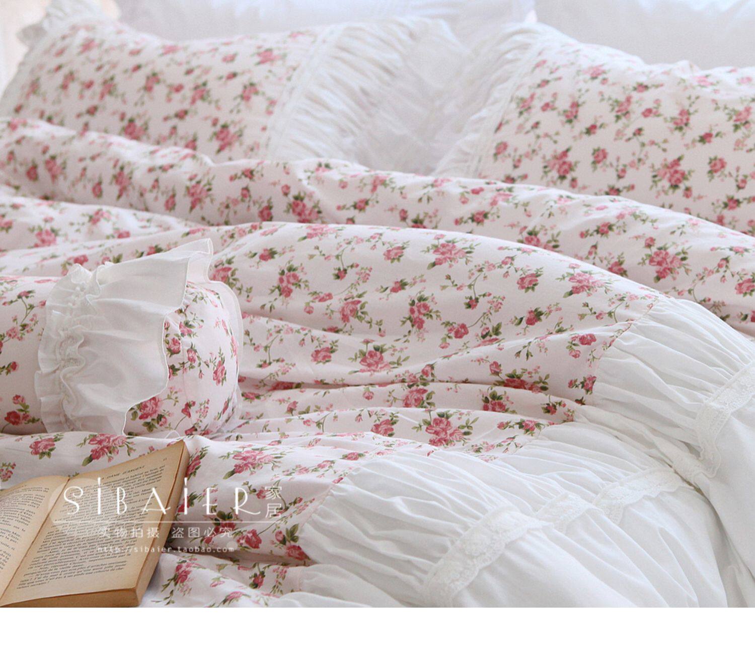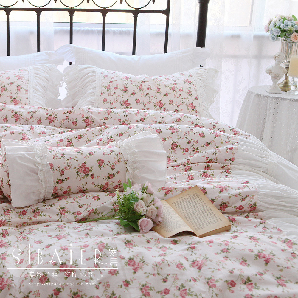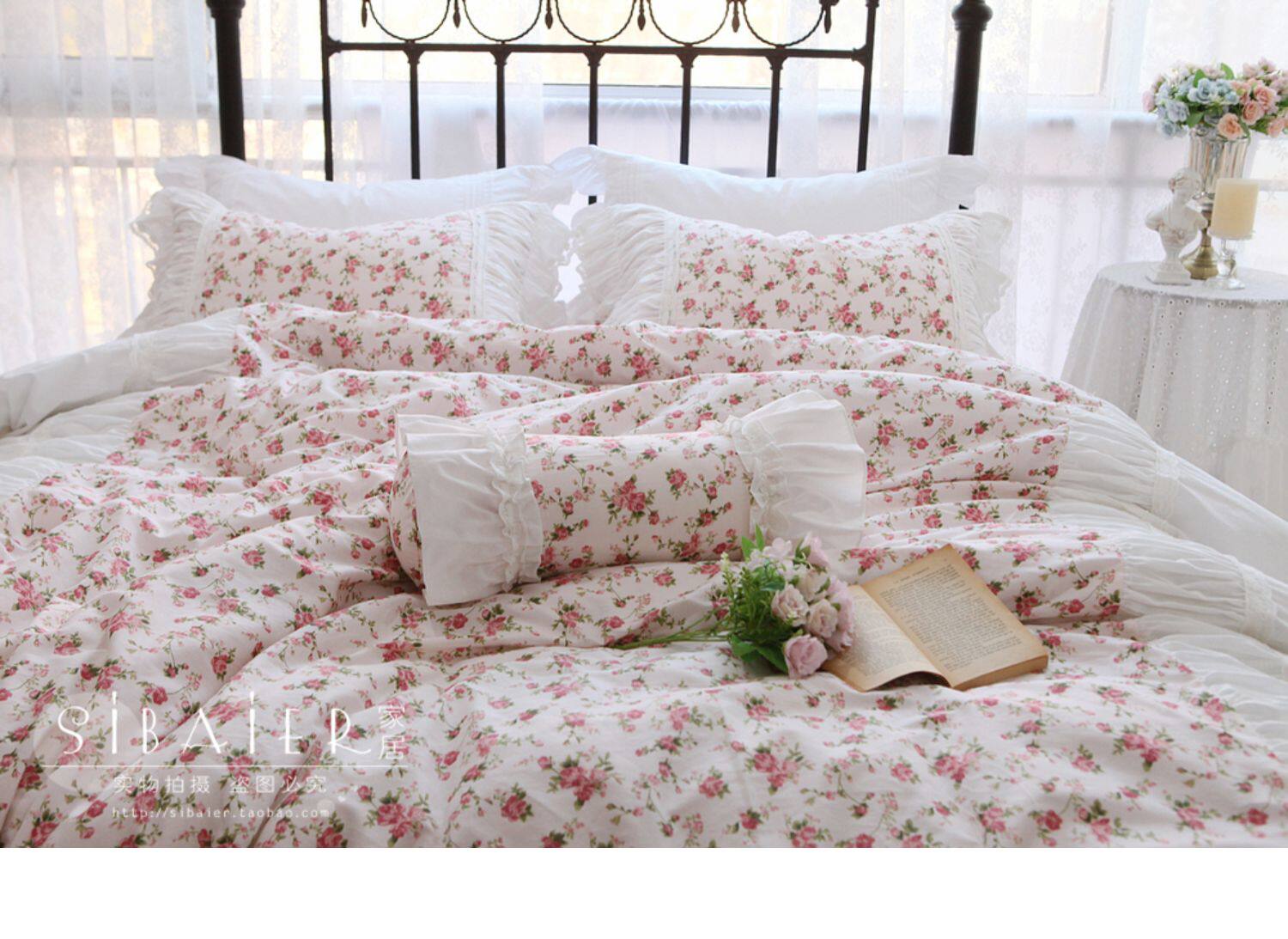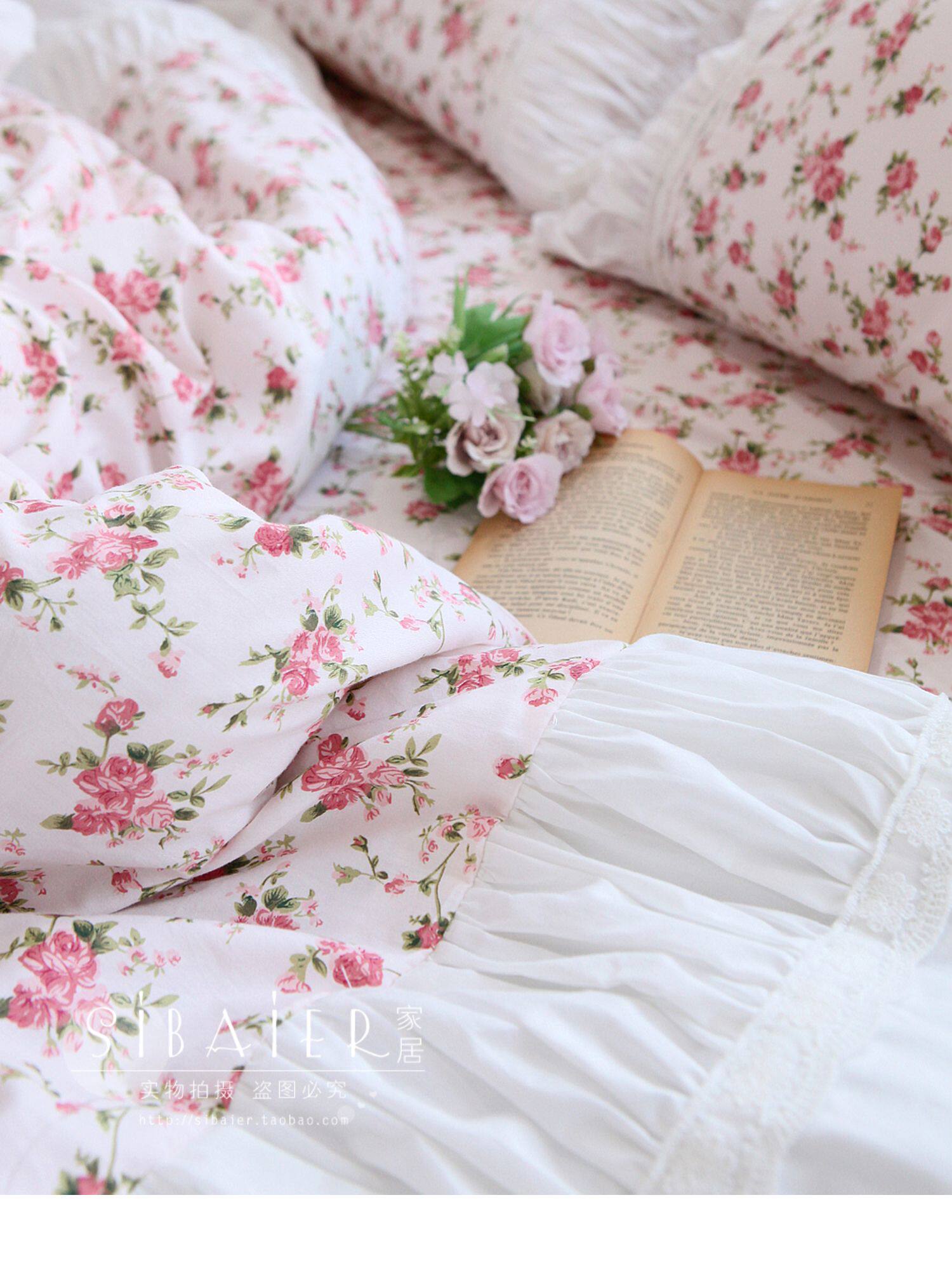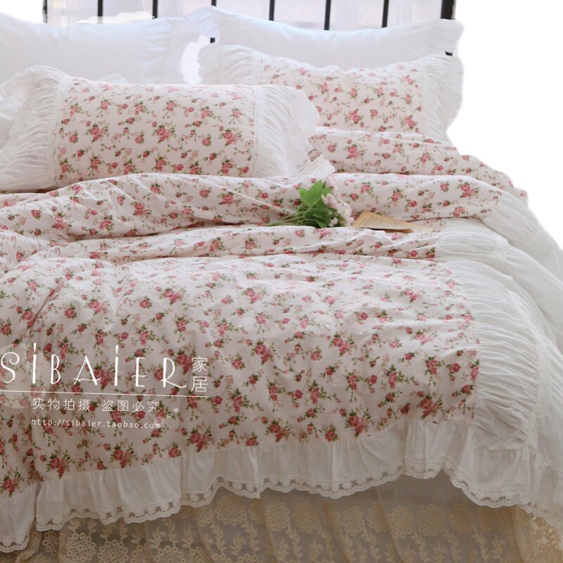 Хлопковое покрывало для принцессы, пододеяльник, комплект, французский стиль, в корейском стиле, цветочный принт, 4 предмета