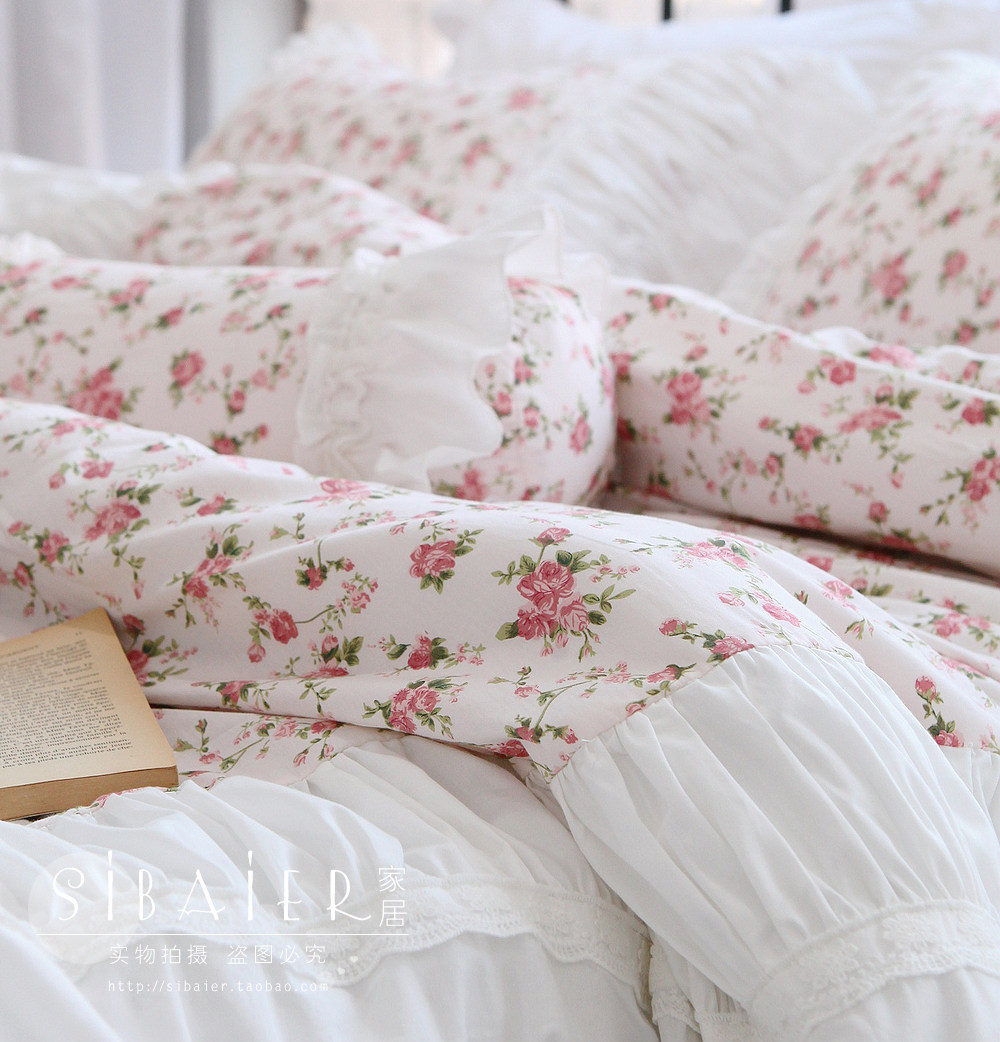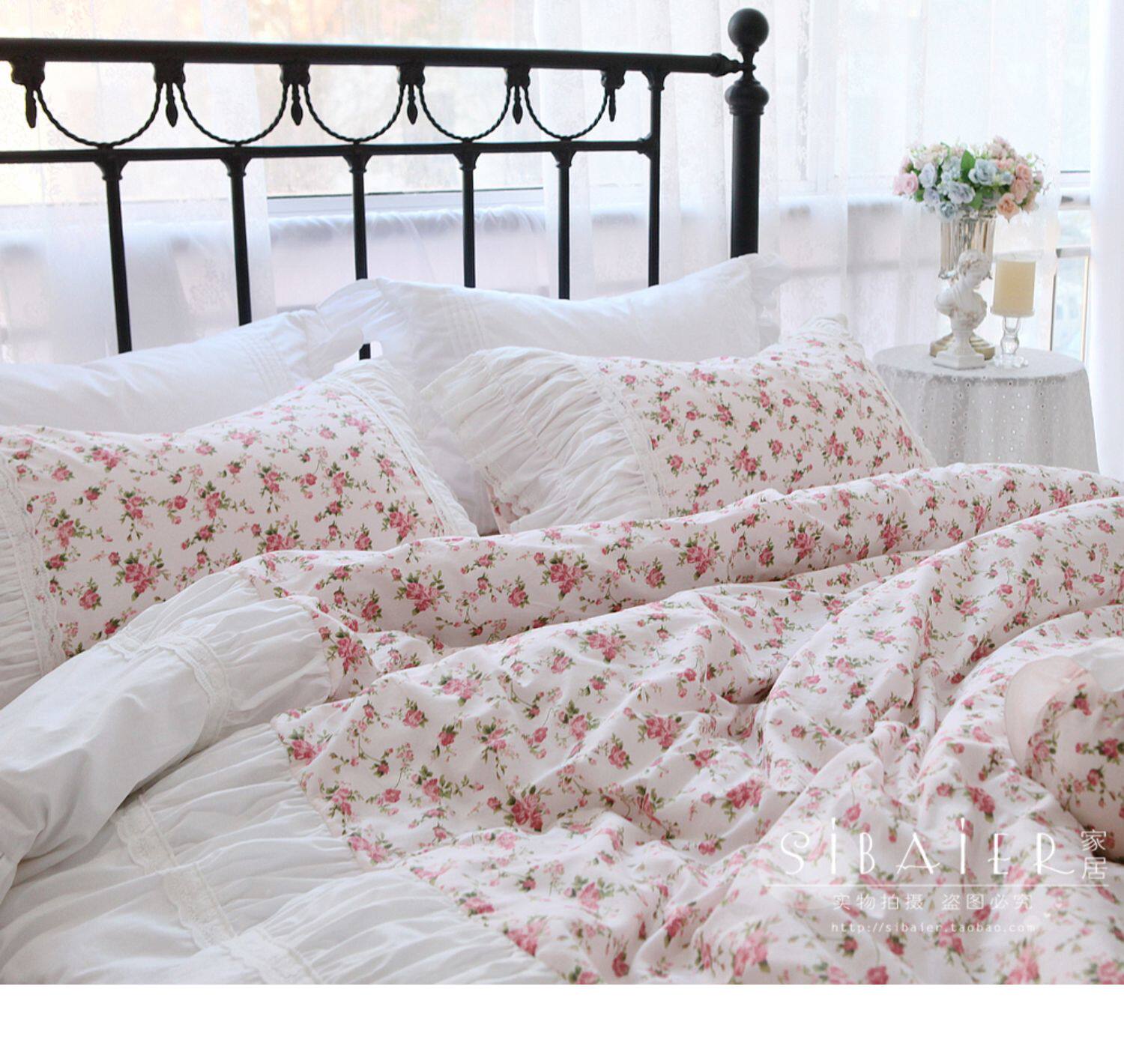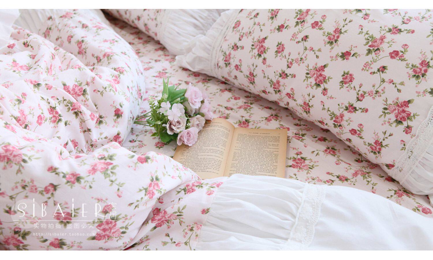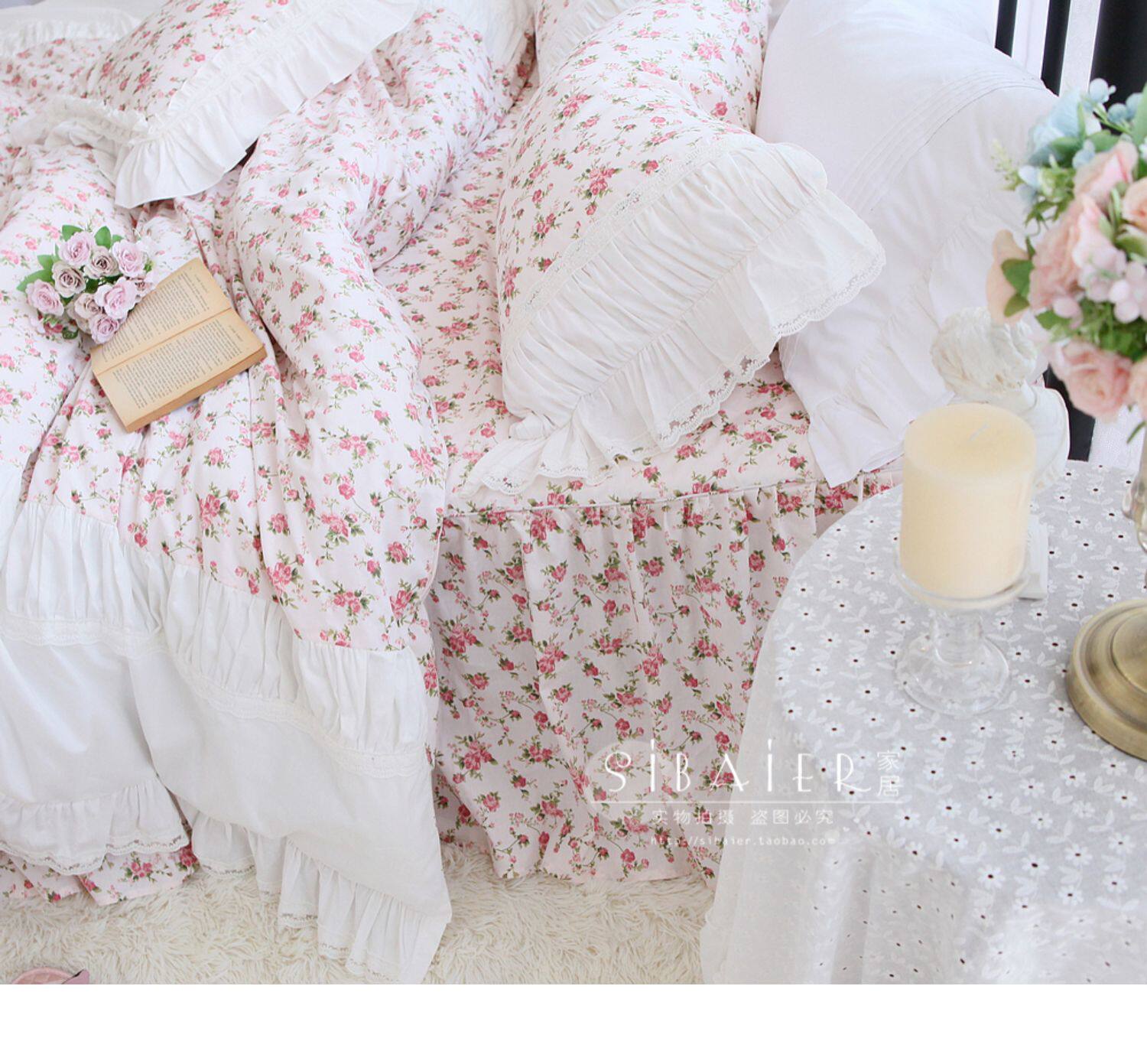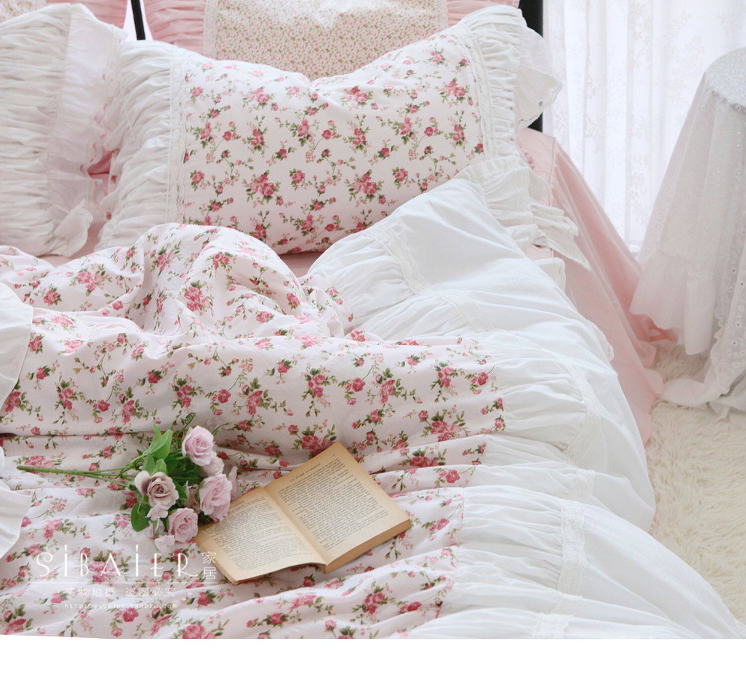 Хлопковое покрывало для принцессы, пододеяльник, комплект, французский стиль, в корейском стиле, цветочный принт, 4 предмета