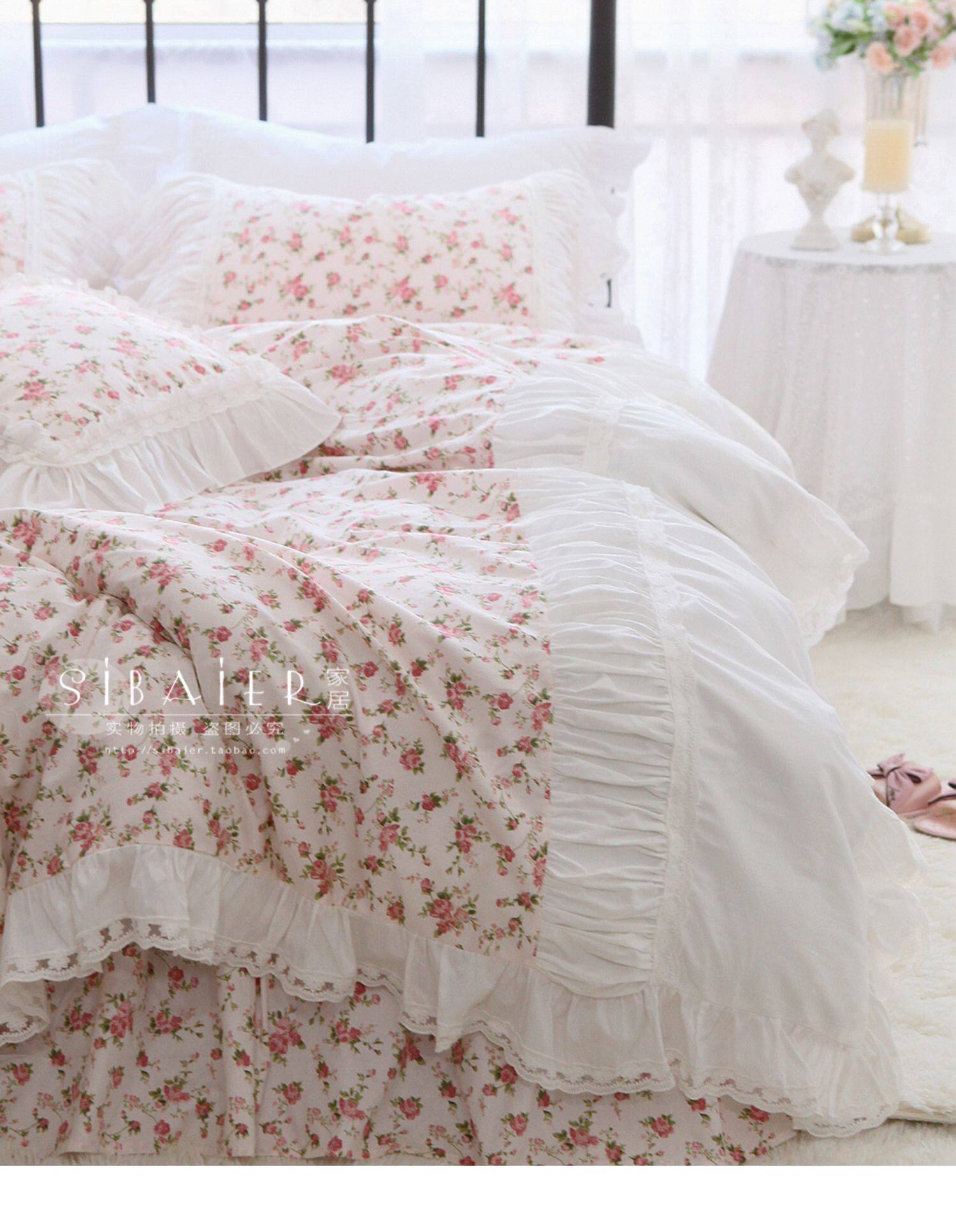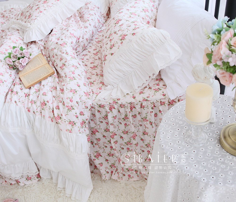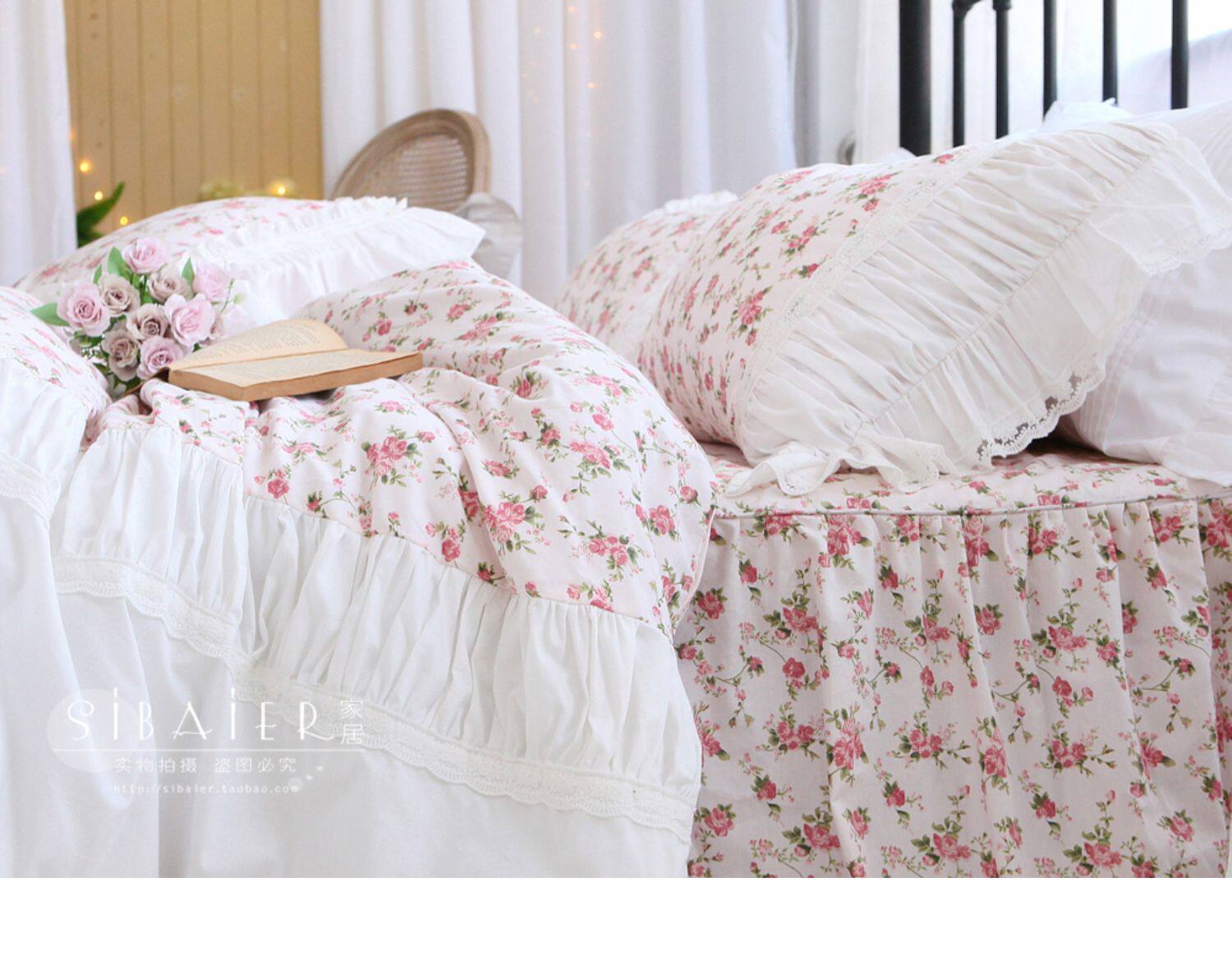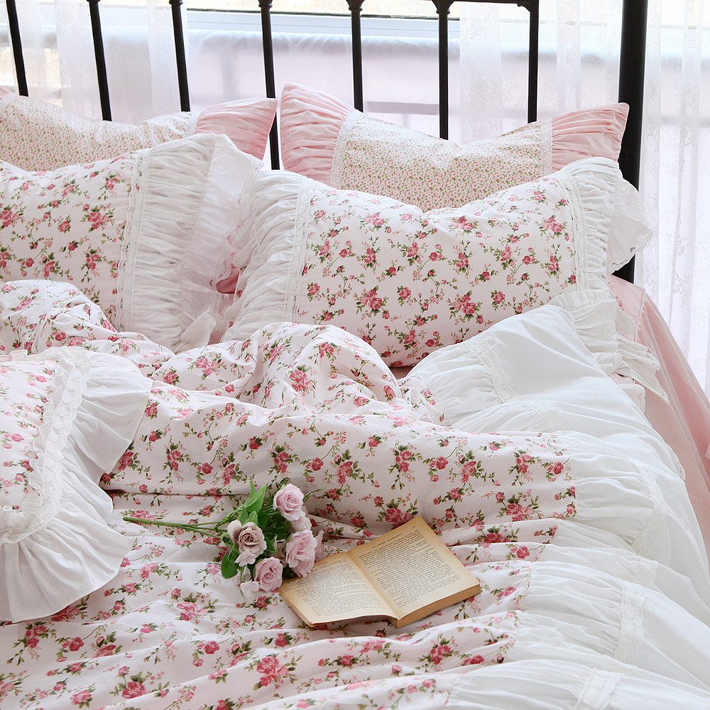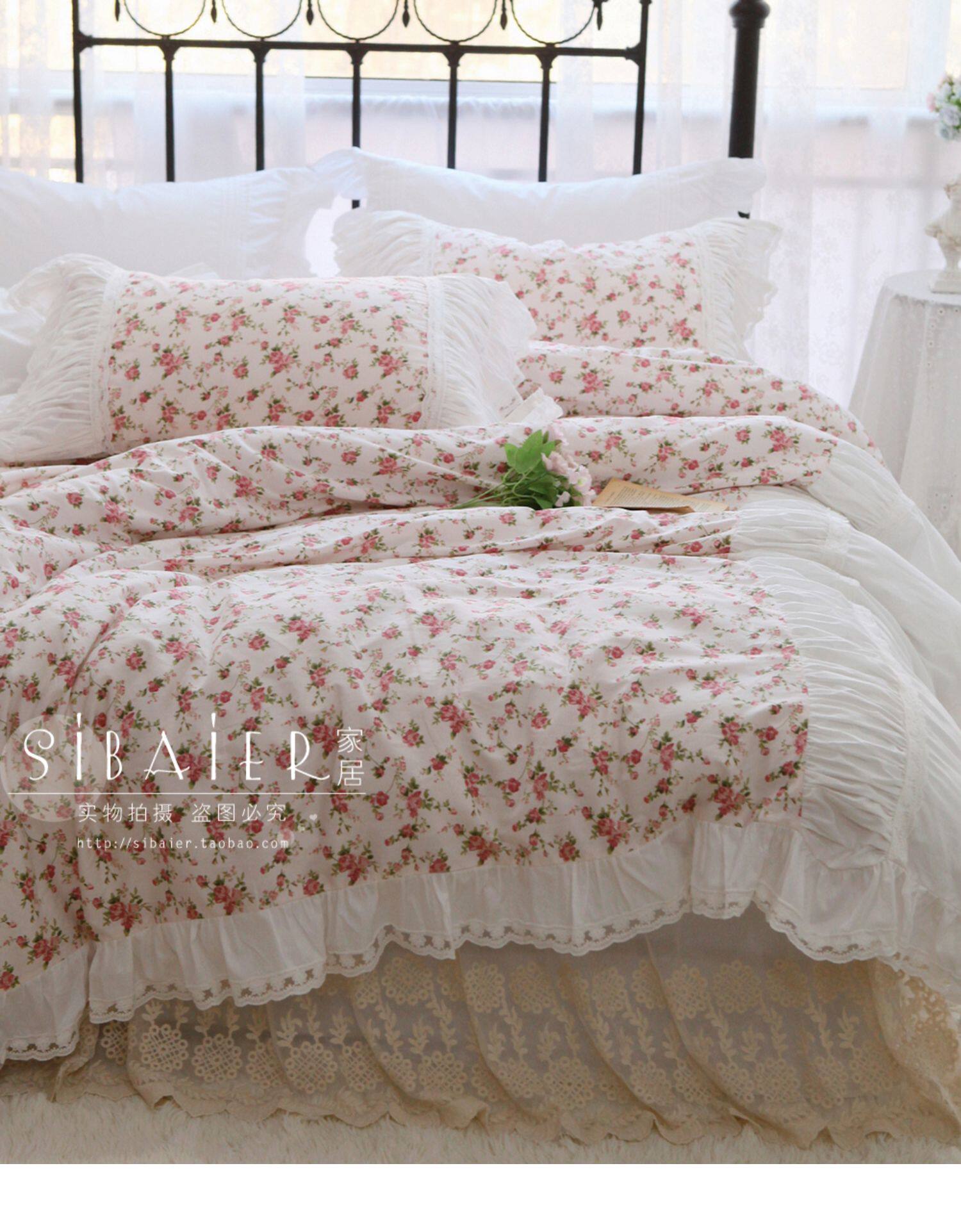 Хлопковое покрывало для принцессы, пододеяльник, комплект, французский стиль, в корейском стиле, цветочный принт, 4 предмета