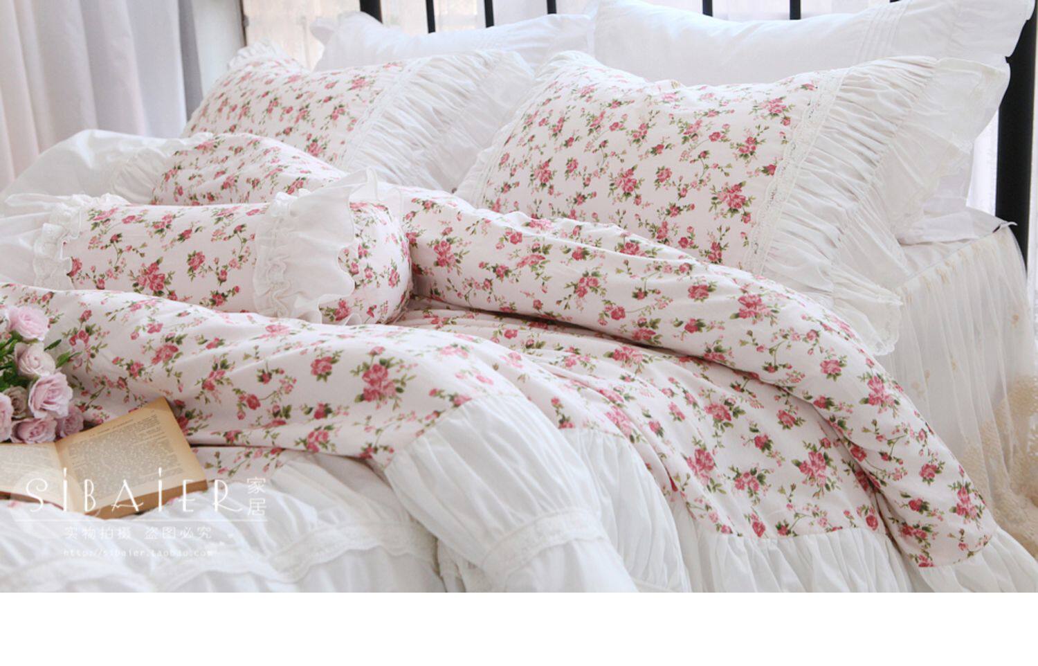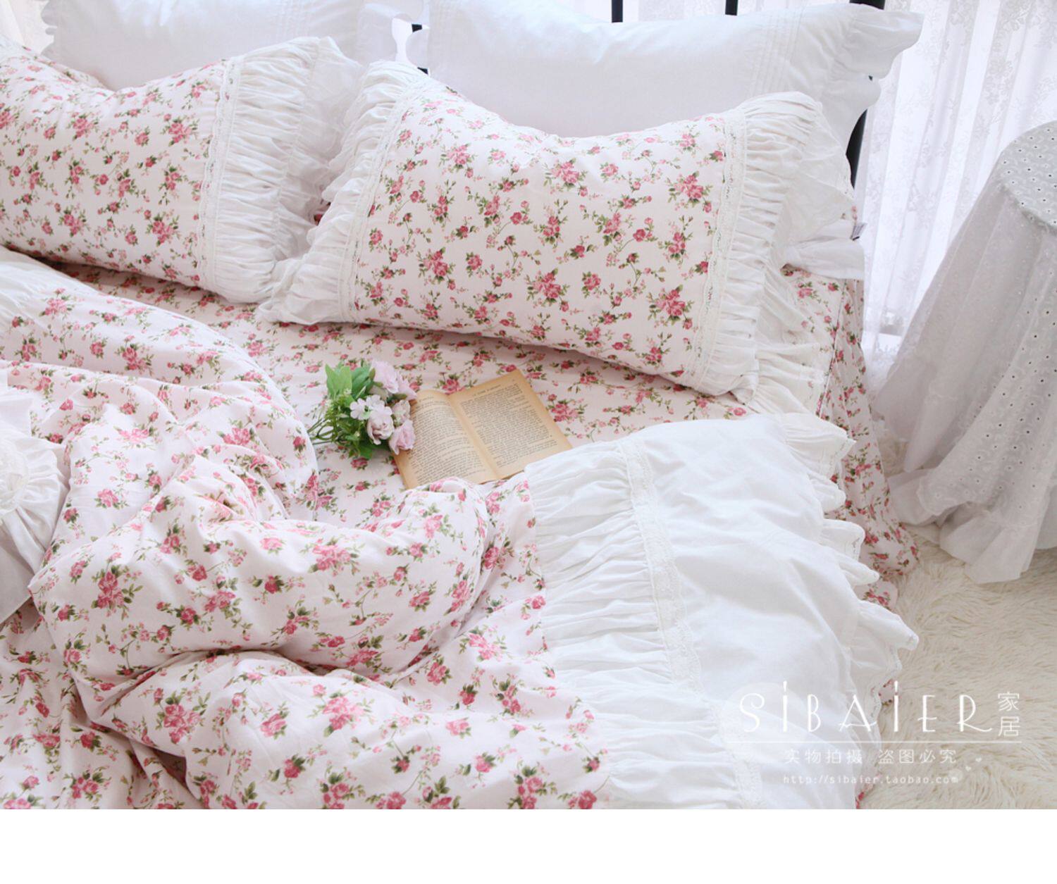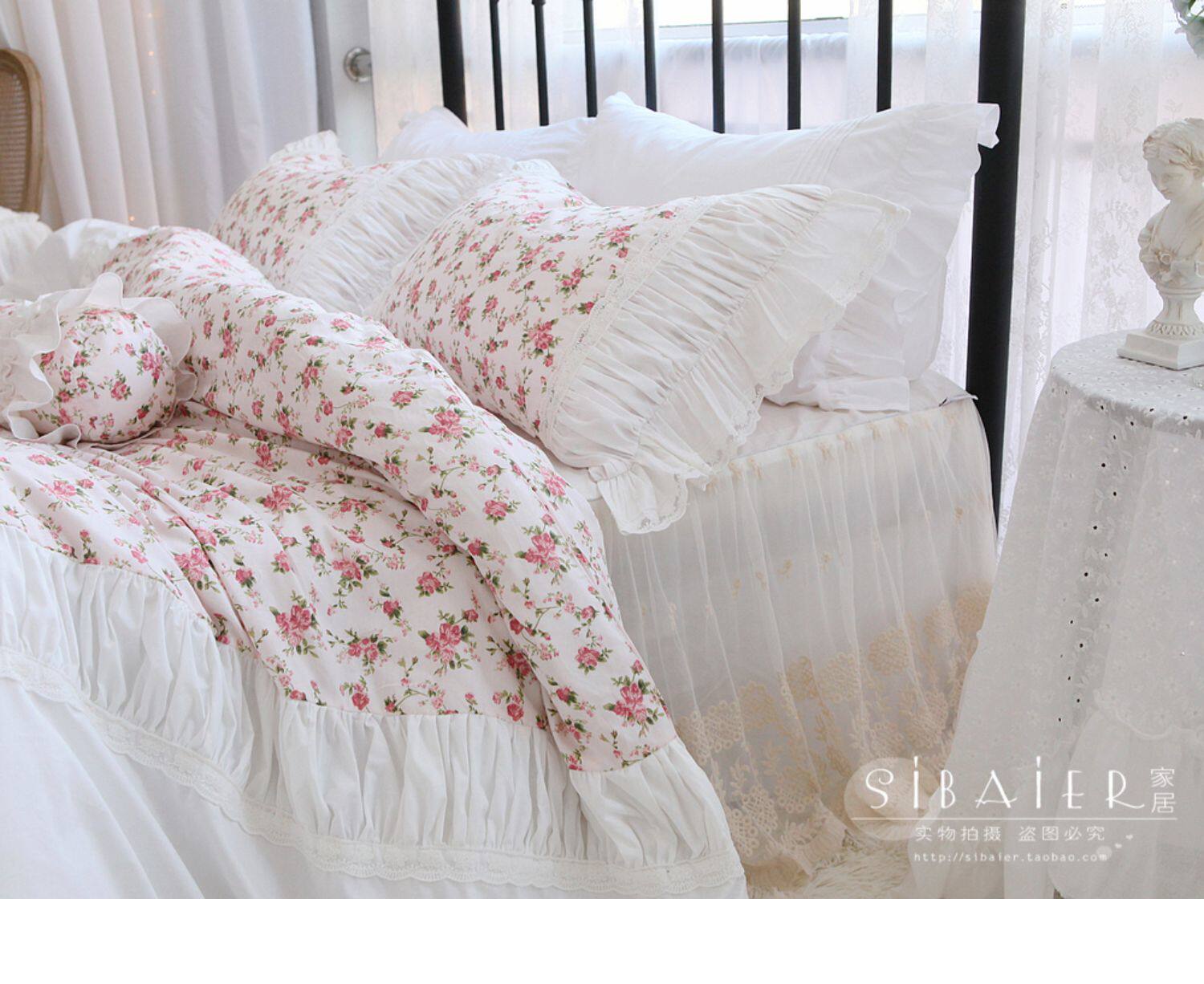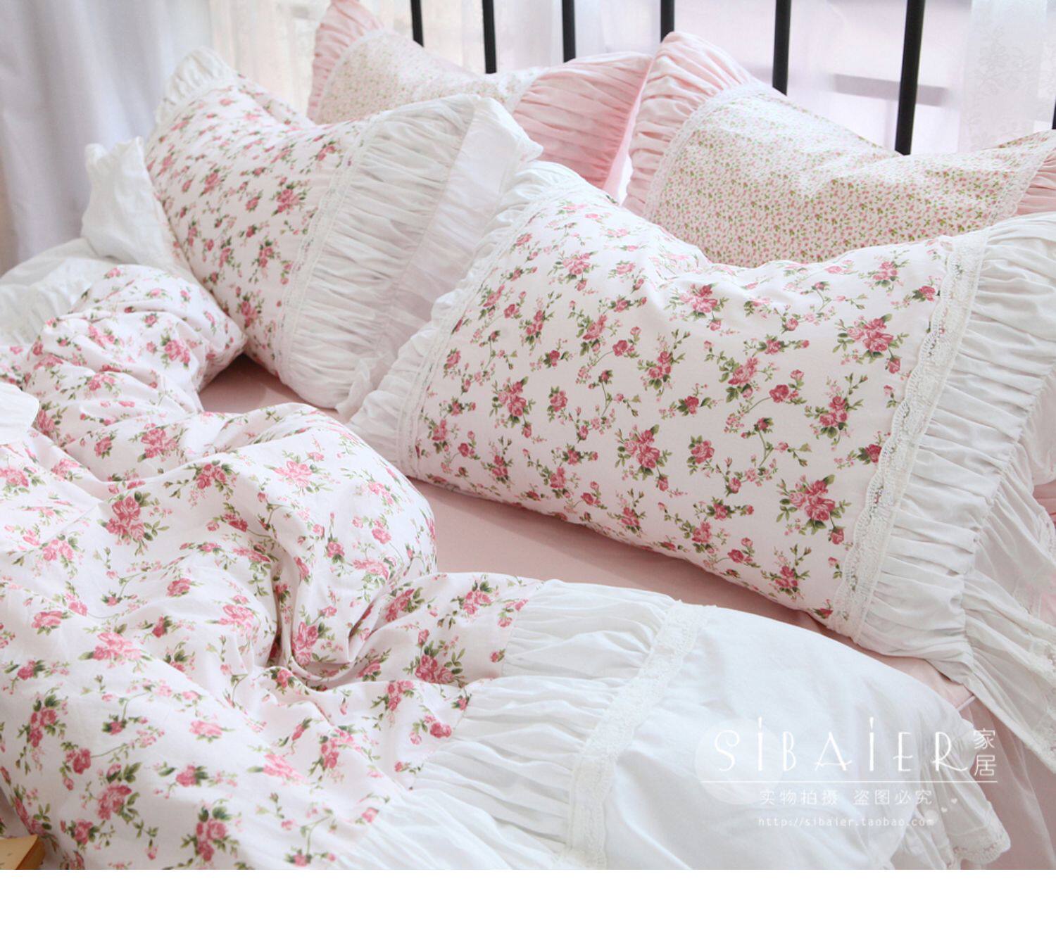 Хлопковое покрывало для принцессы, пододеяльник, комплект, французский стиль, в корейском стиле, цветочный принт, 4 предмета