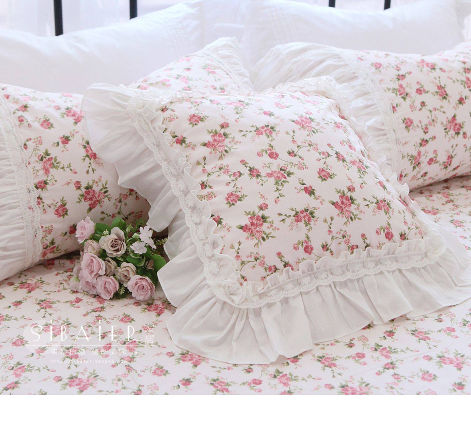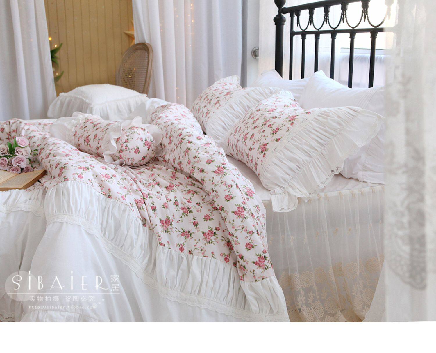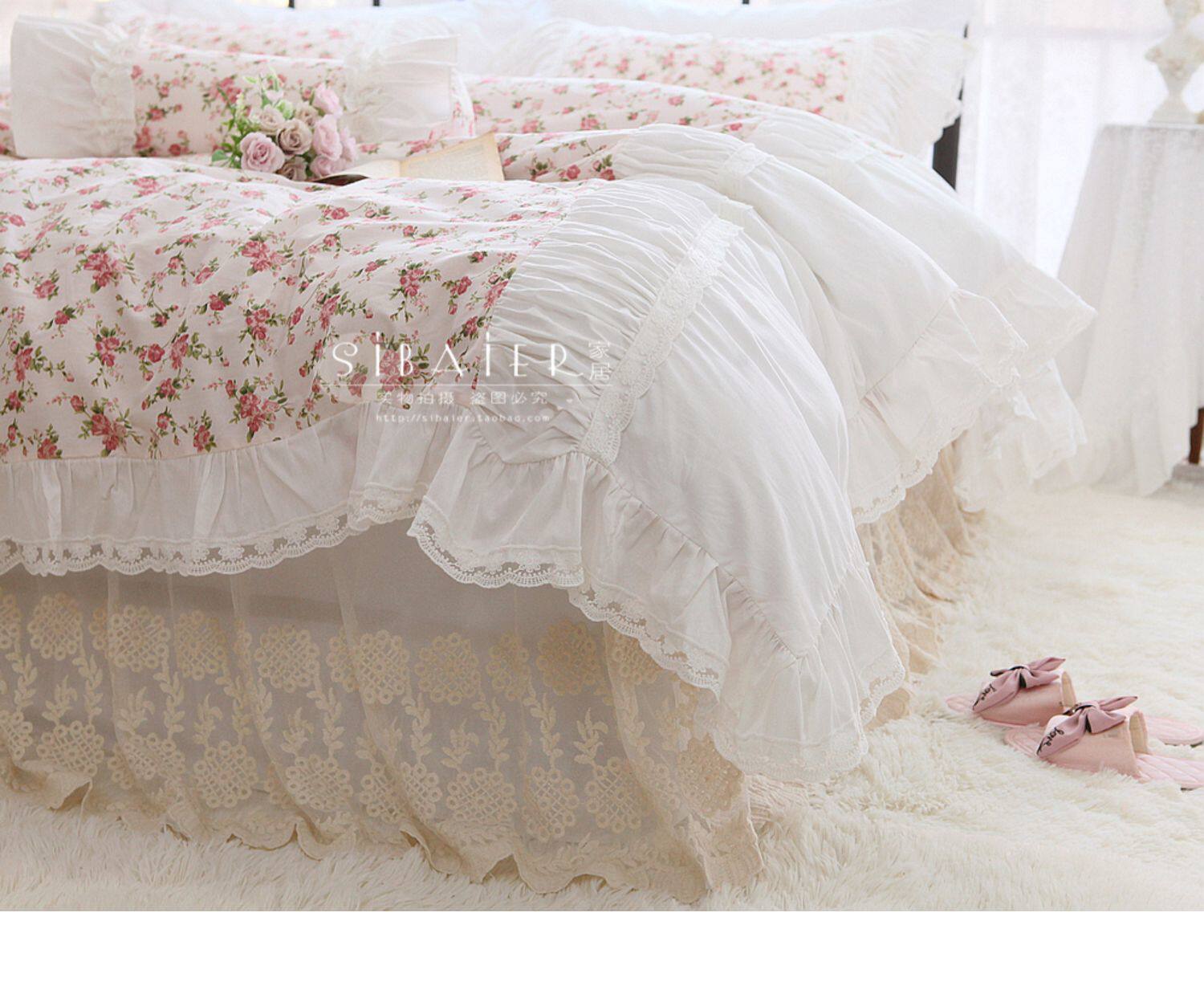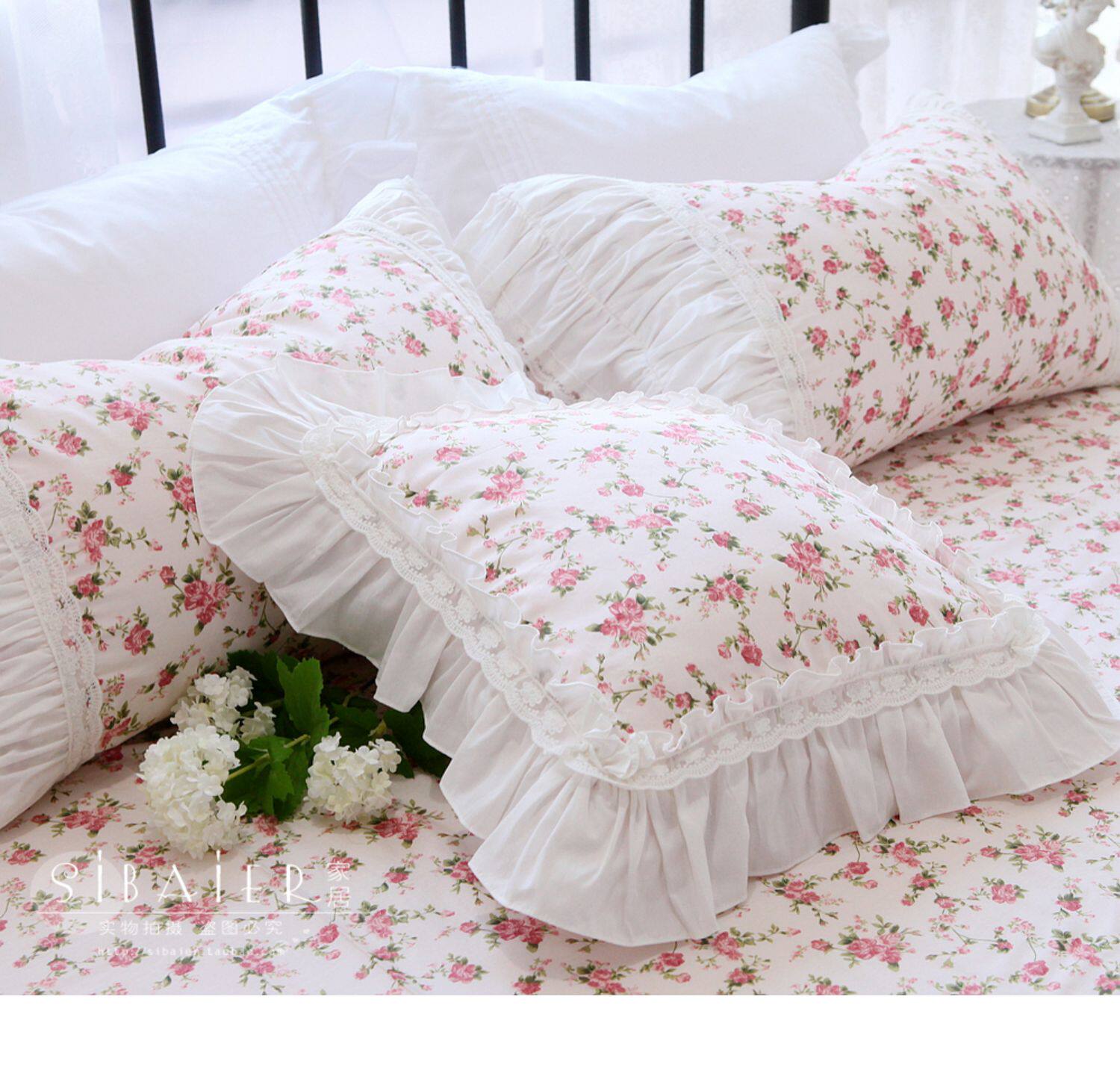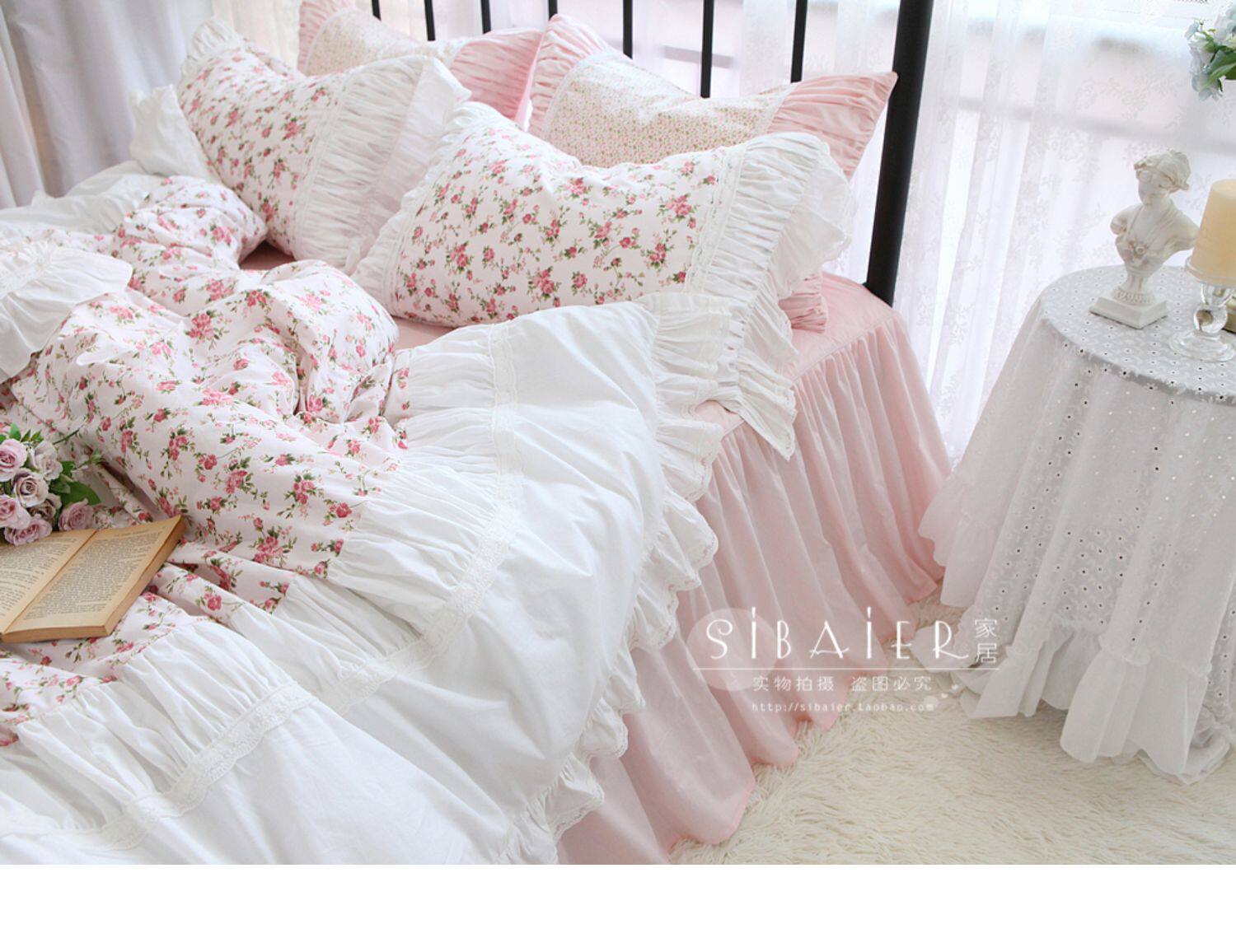 Хлопковое покрывало для принцессы, пододеяльник, комплект, французский стиль, в корейском стиле, цветочный принт, 4 предмета