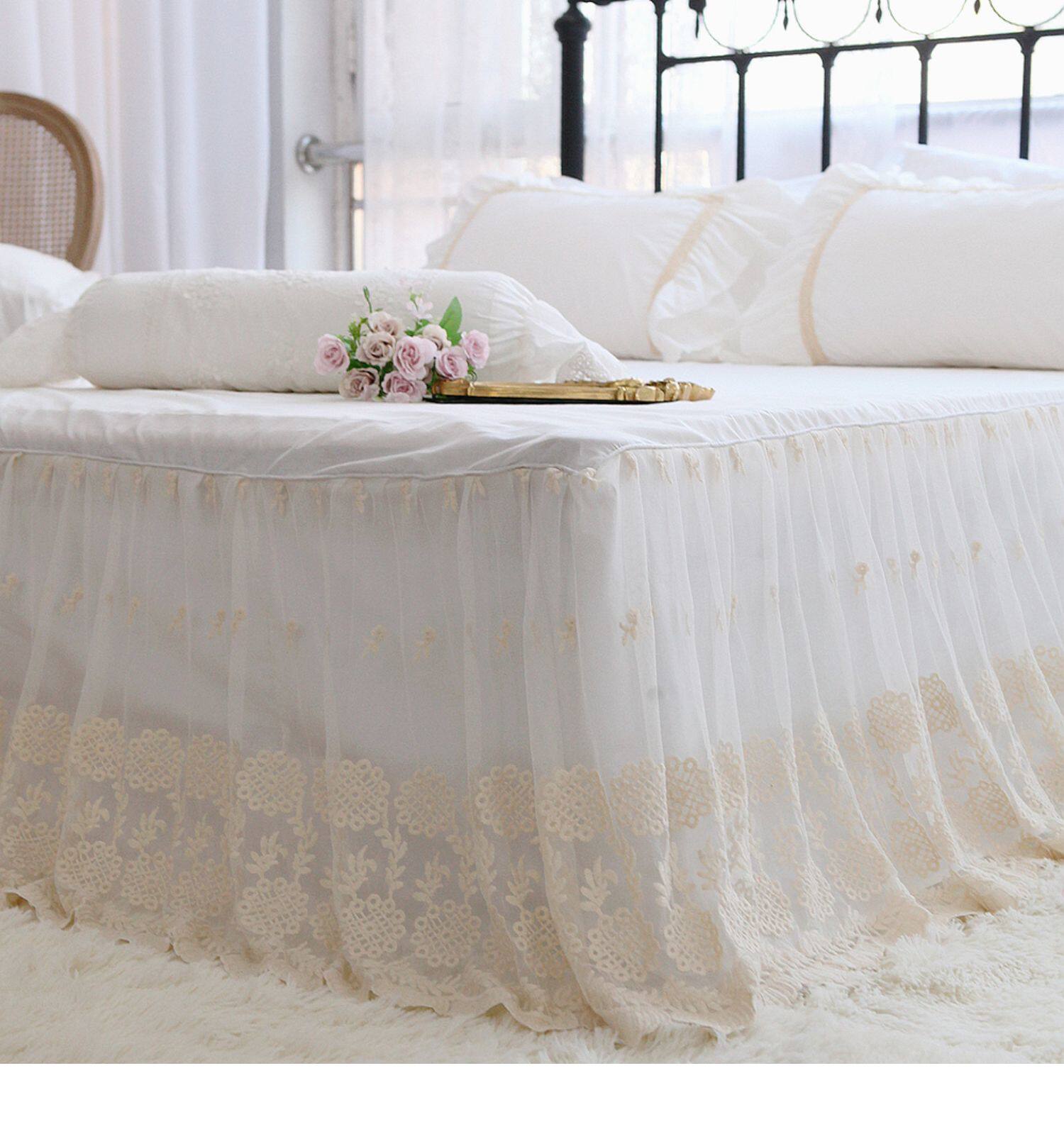 - Вышитая кружевная юбка для кровати