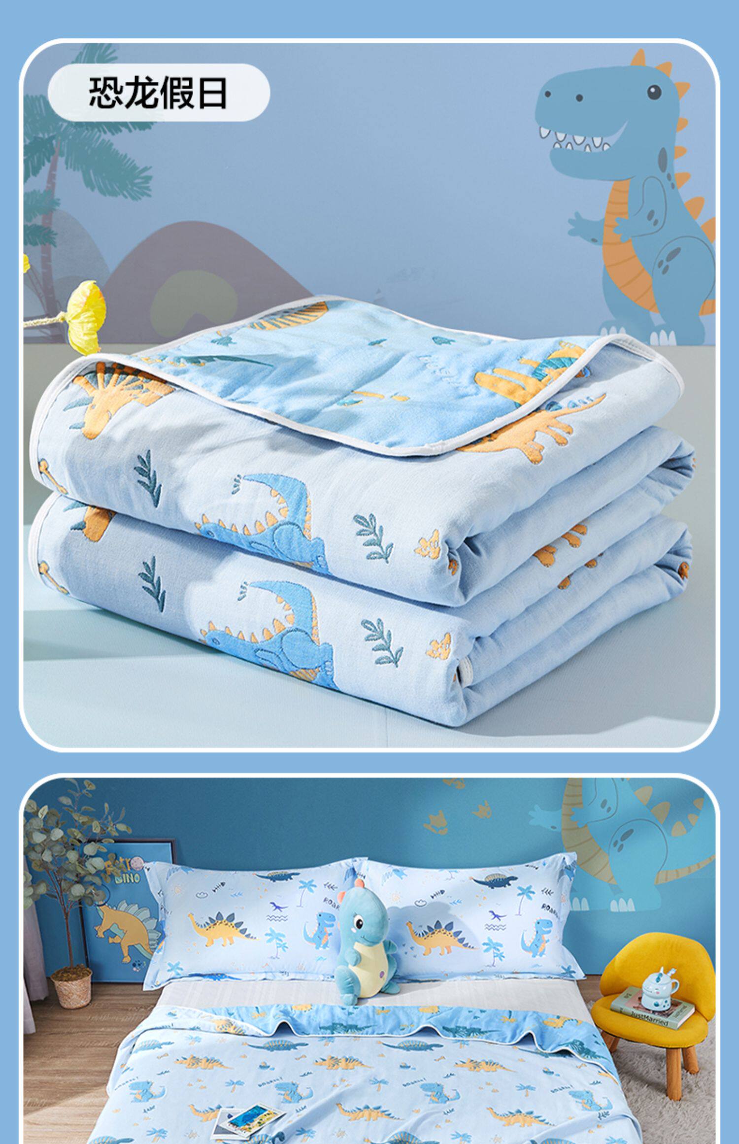 - Хлопковое марлевое полотенце, динозавр