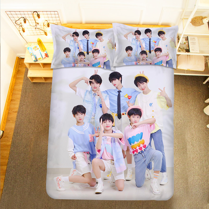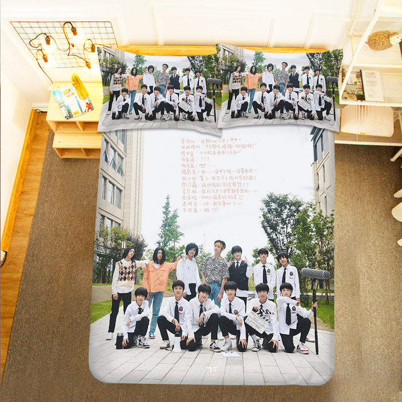 Семейный листовый листовый листовый стеганый одеял с четырьмя частями набор Zhu Zhixin Mu Zhi, Su Xinhao Zuohang Star Fan