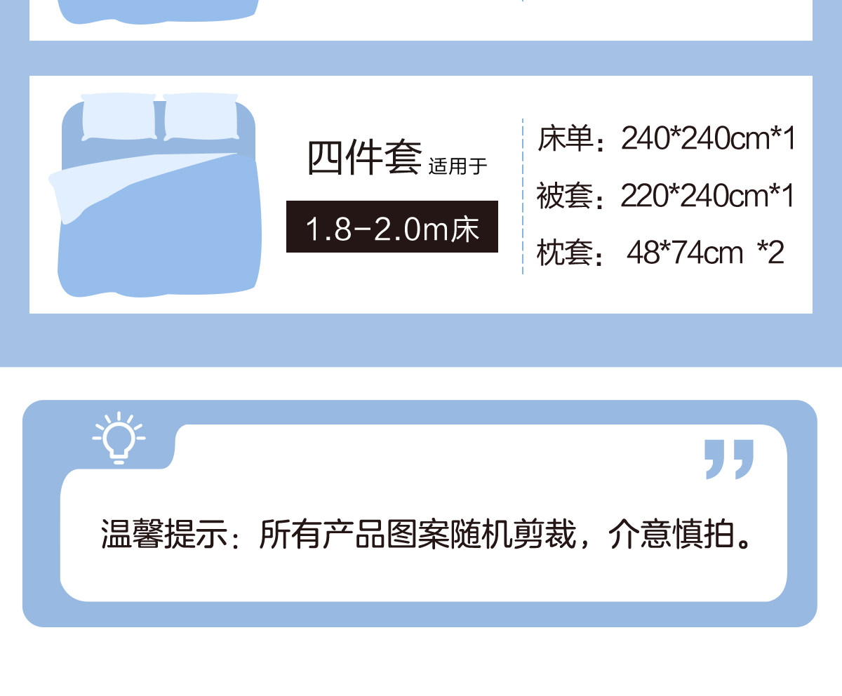 | Ширина кровати: | Комплект из трех предметов, подходящий для детских кроваток. Рекомендуется использовать лоскутные сердечники размером 120*150., Три -набор для кровати применимо к 1,2 млн. С 150*210 стеганым одеялом, Три -набор для кроватей применимо к 1,35 млн. С 150*210 стеганым одеялом, Четырехэтажный набор применимо к 1,5 -метровым кроватям и рекомендуется с 200*230 одеялом, Набор из четырех частей применим к 1,8-2M-кроватям, с 220*240 ядрами |