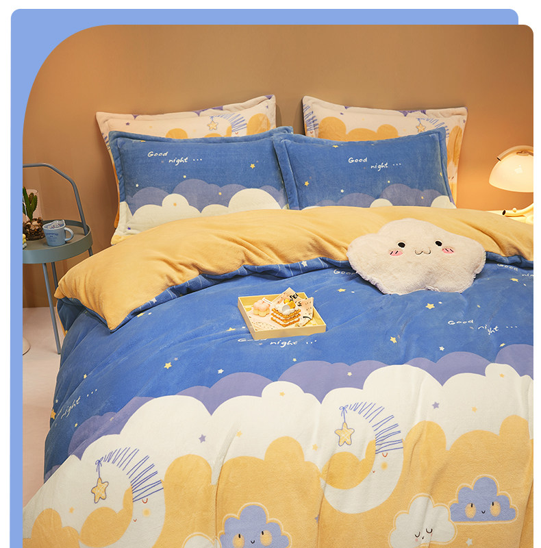 博洋 Детский зимний комплект для мальчиков, двусторонная флисовая простыня, коралловый пододеяльник, 4 предмета, постельные принадлежности, 3 предмета