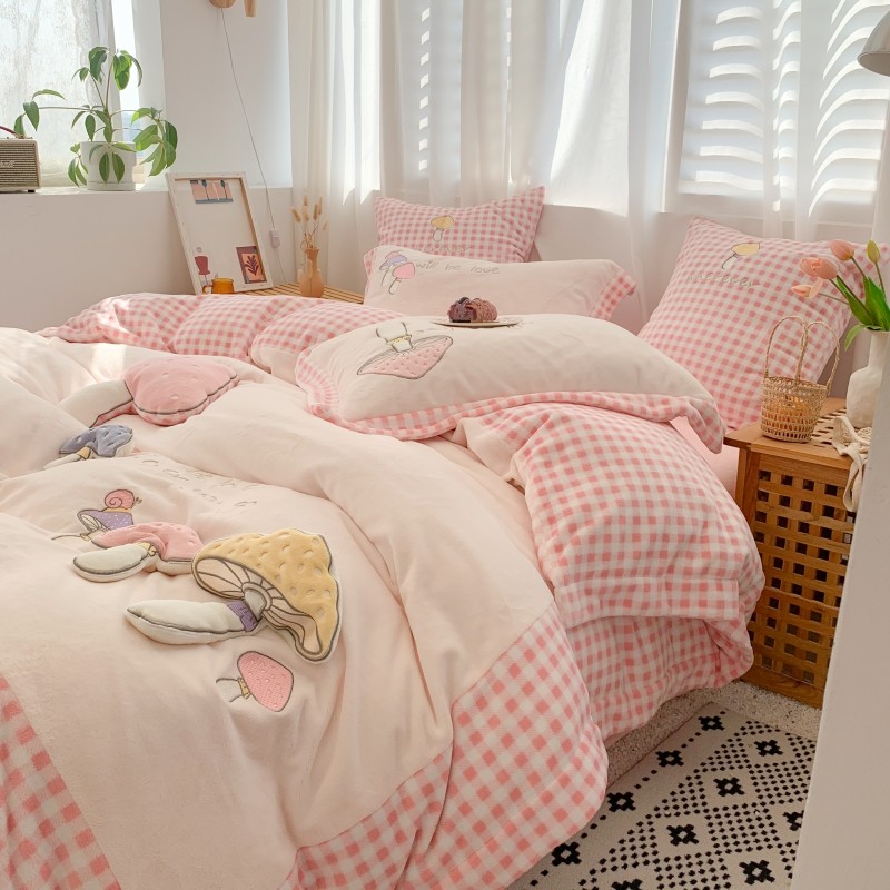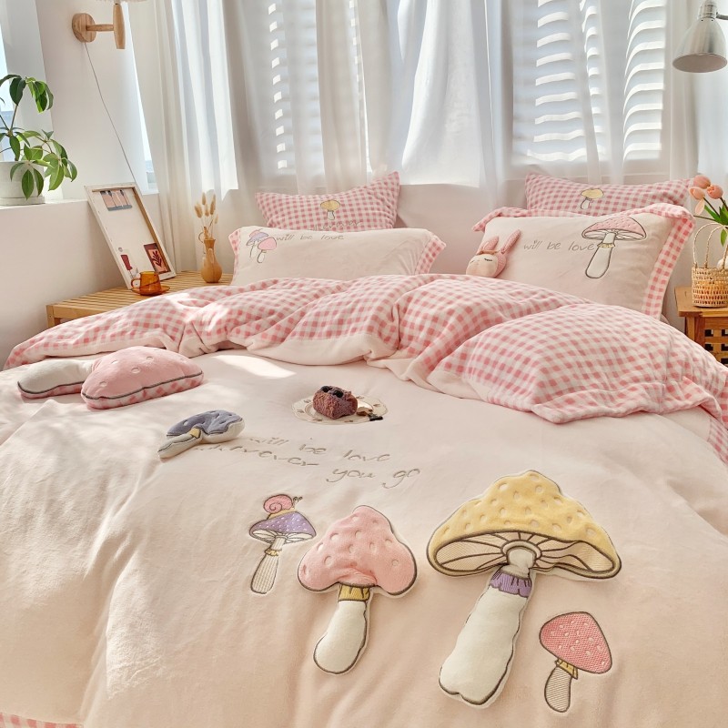 Трехмерный комплект, милый коралловый пододеяльник, высококлассная простыня, 4 предмета, постельные принадлежности