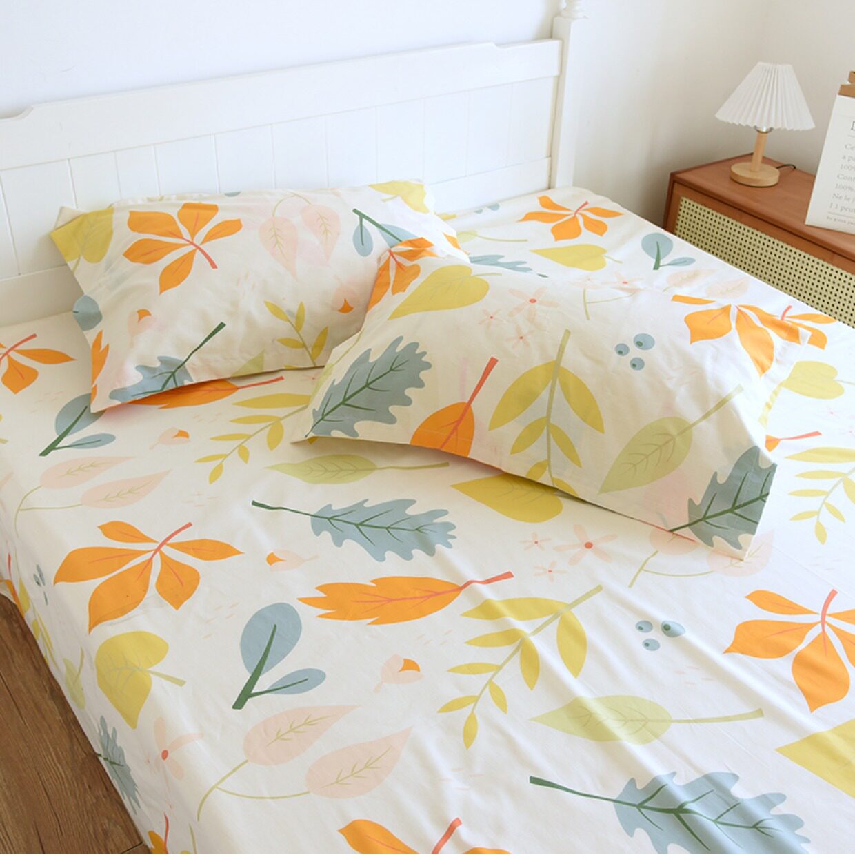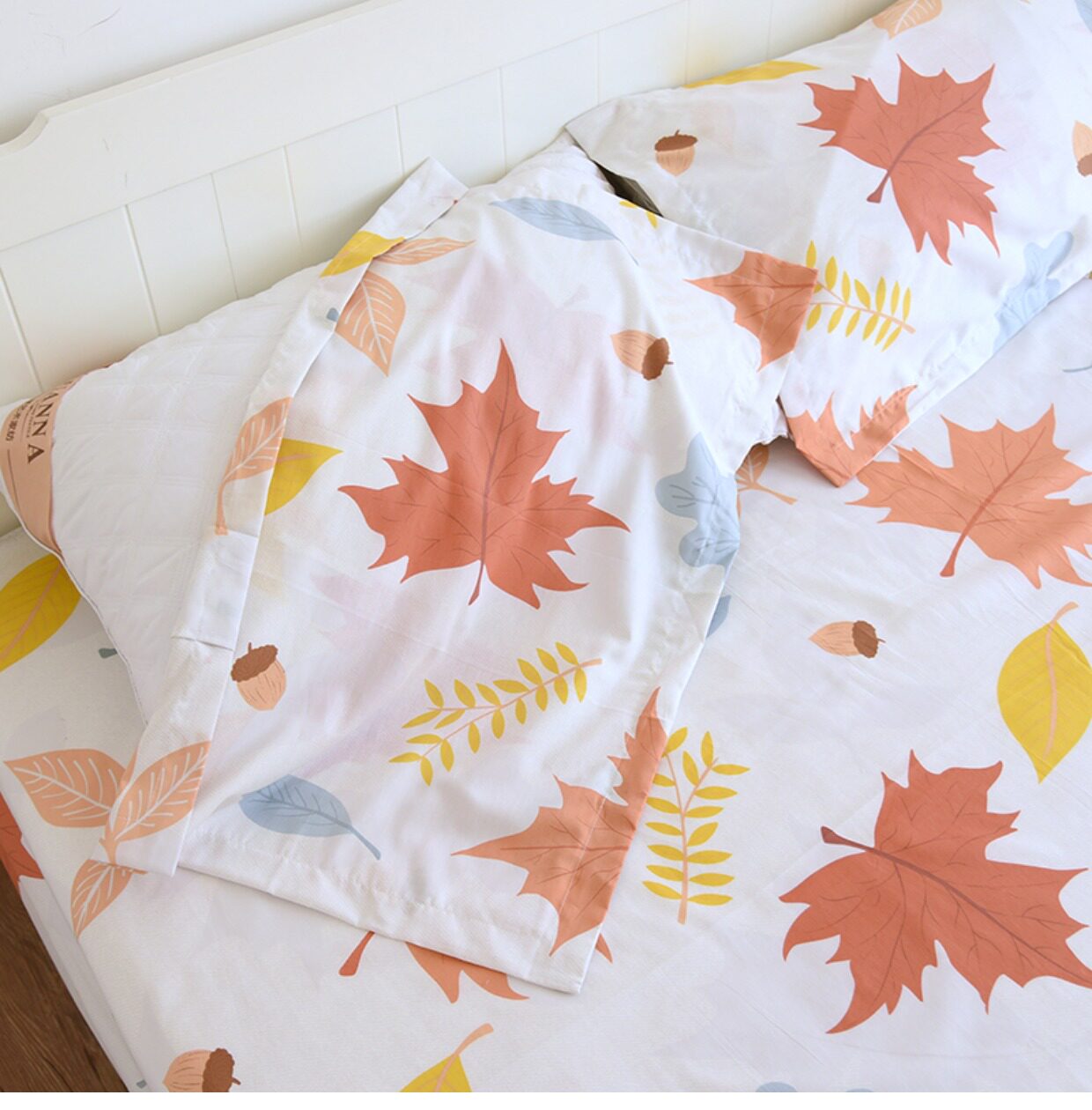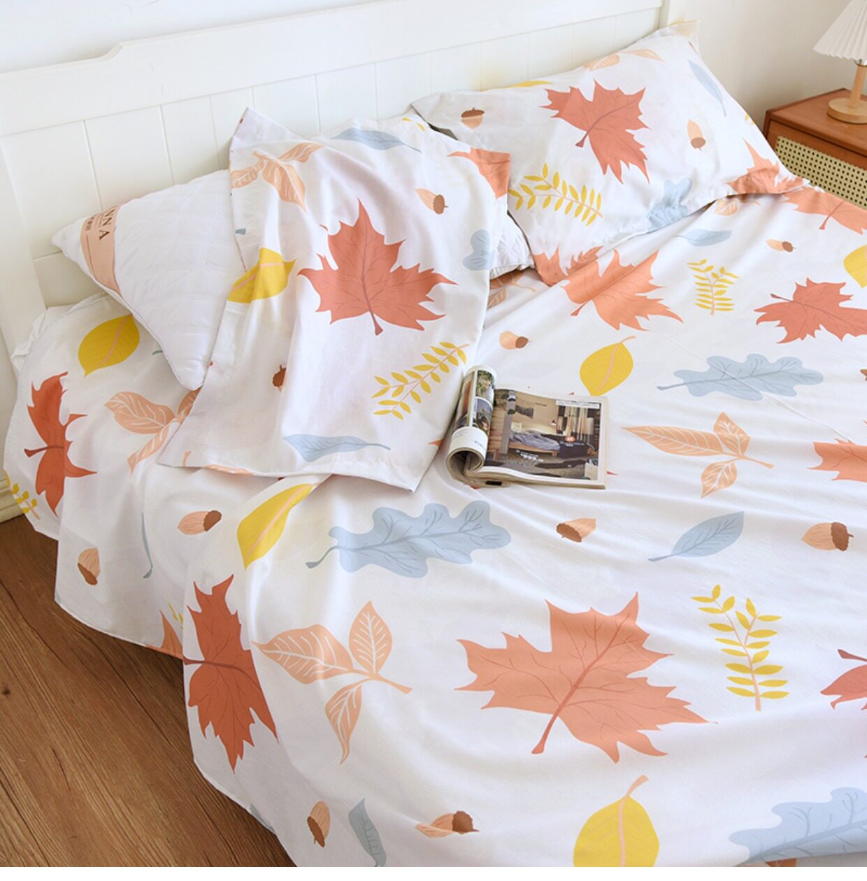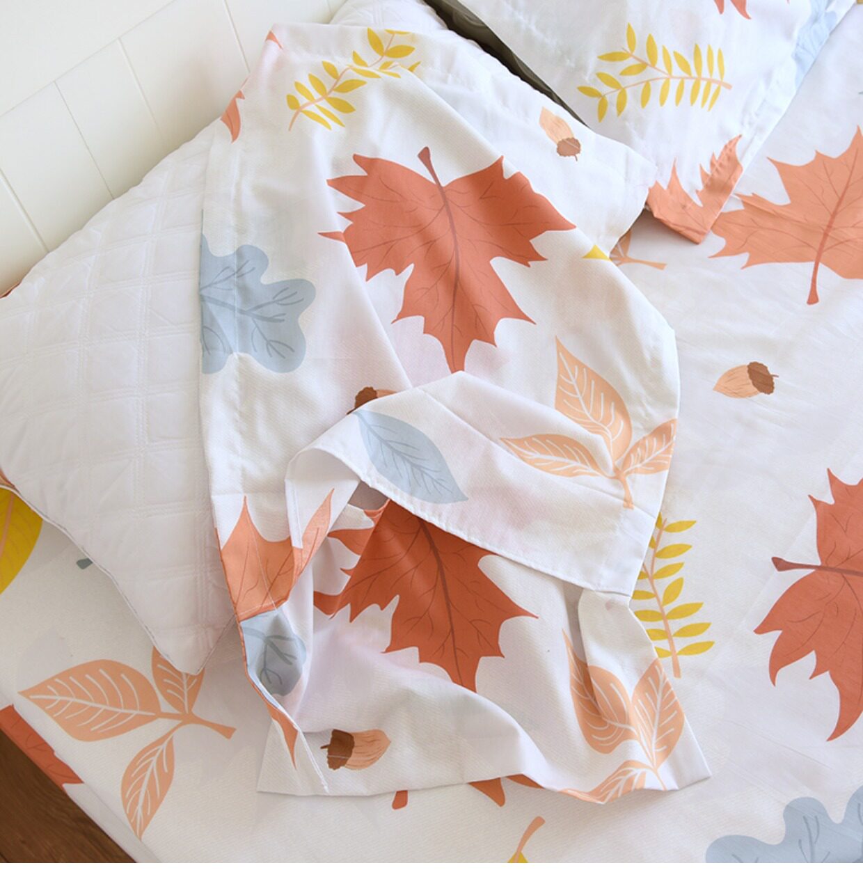 Комплект, покрывало, простыня, хлопковая наволочка, 3 предмета, осенний