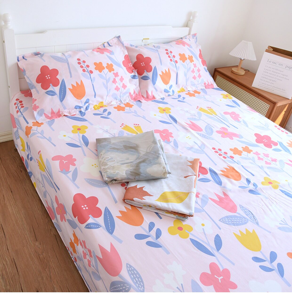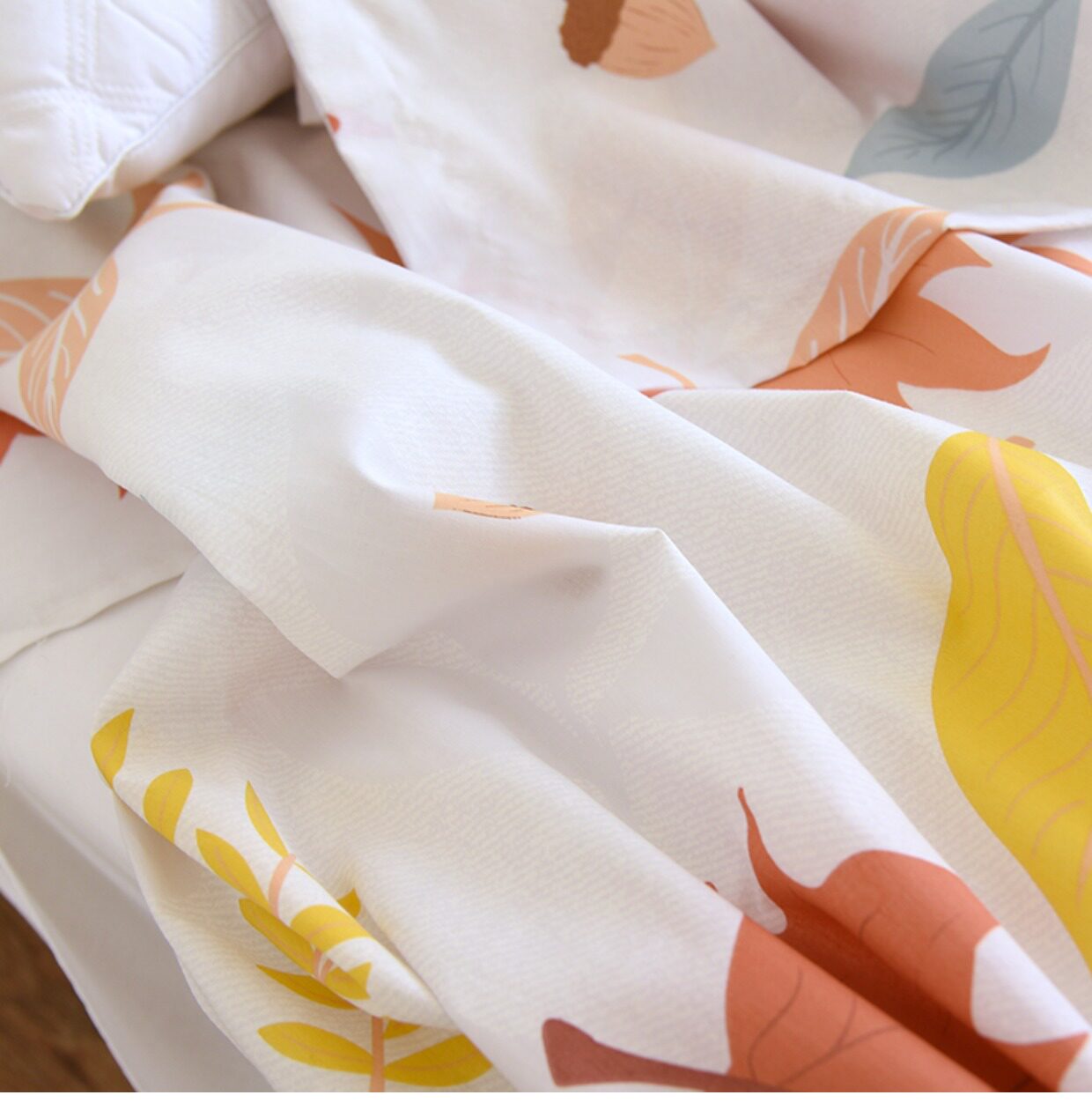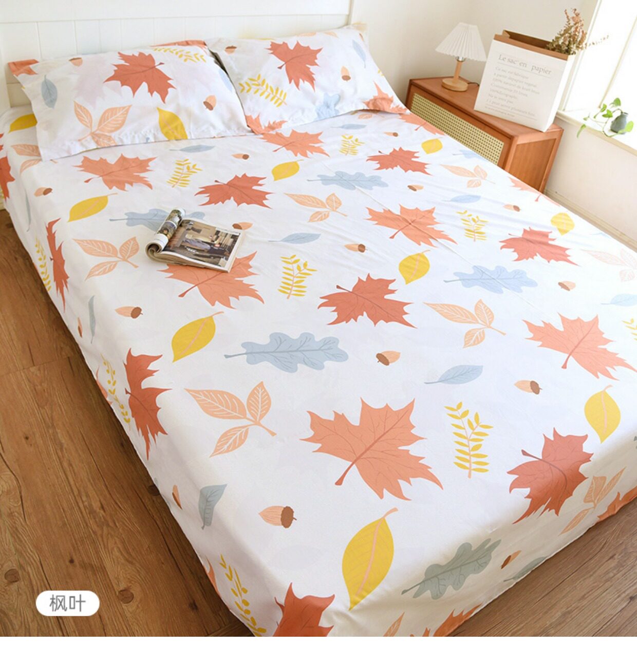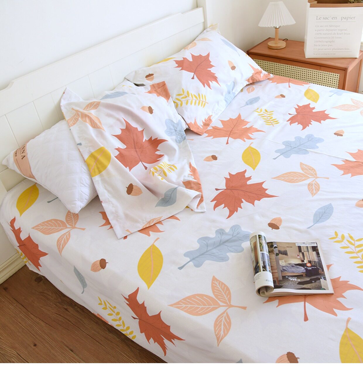 Комплект, покрывало, простыня, хлопковая наволочка, 3 предмета, осенний