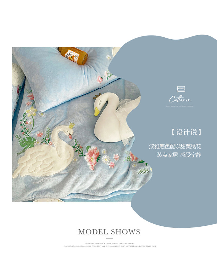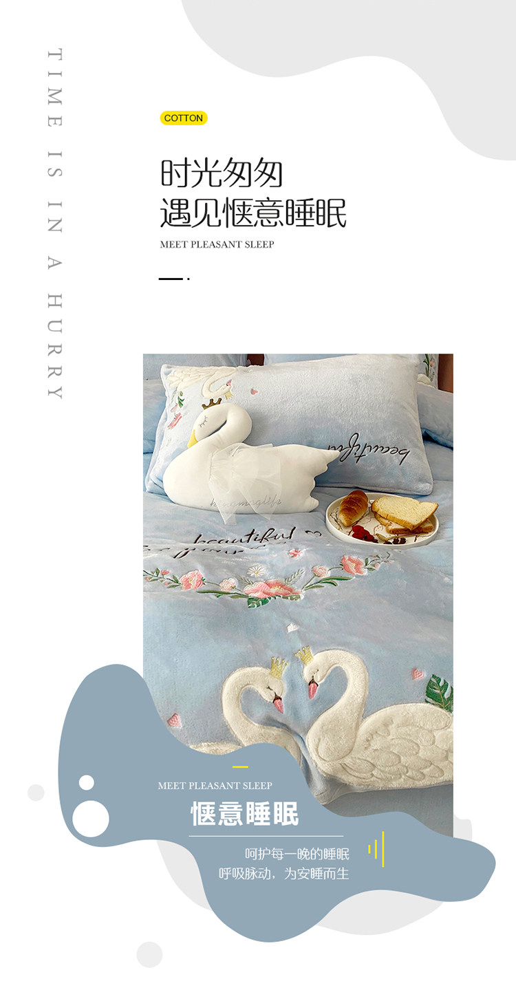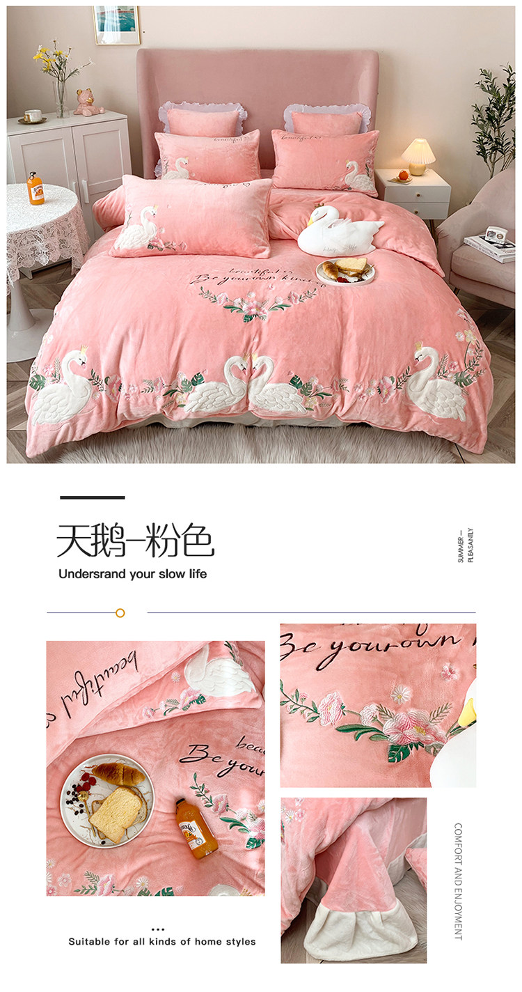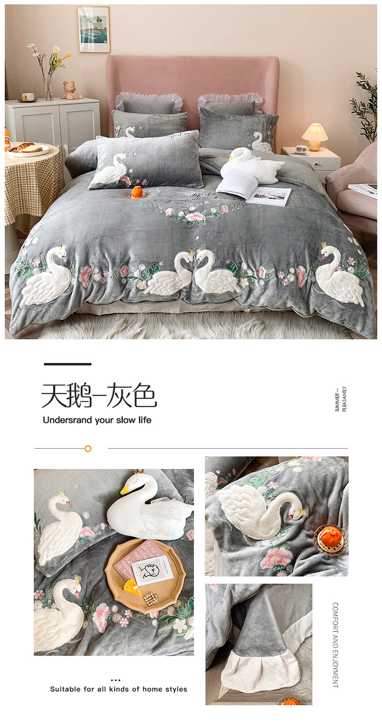 Детский лебедь, синий комплект, коралловый пододеяльник, простыня, с вышивкой, 4 предмета, легкий роскошный стиль, постельные принадлежности