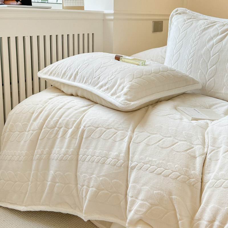 Белый зимний удерживающий тепло комплект, коралловый пододеяльник, простыня, 4 предмета, легкий роскошный стиль, постельные принадлежности