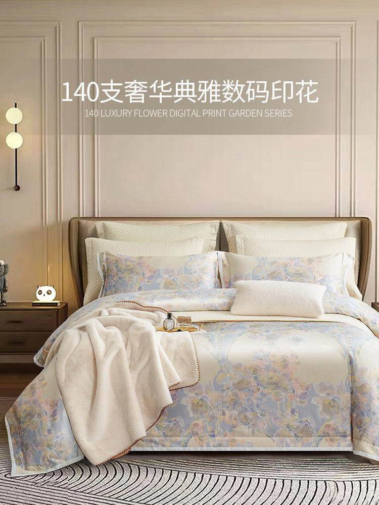 Импортный качественный хлопковый комплект, покрывало, 4 предмета, простой и элегантный дизайн, легкий роскошный стиль, 140 шт