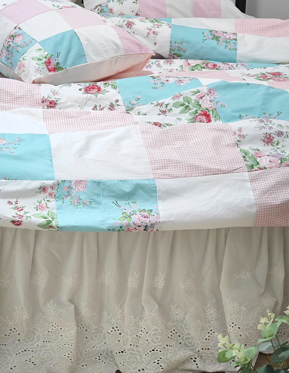 Юбка для кровати с вышивкой молочно-белых роз, комплект из четырех предметов, 100% выстрел в натуральном выражении
