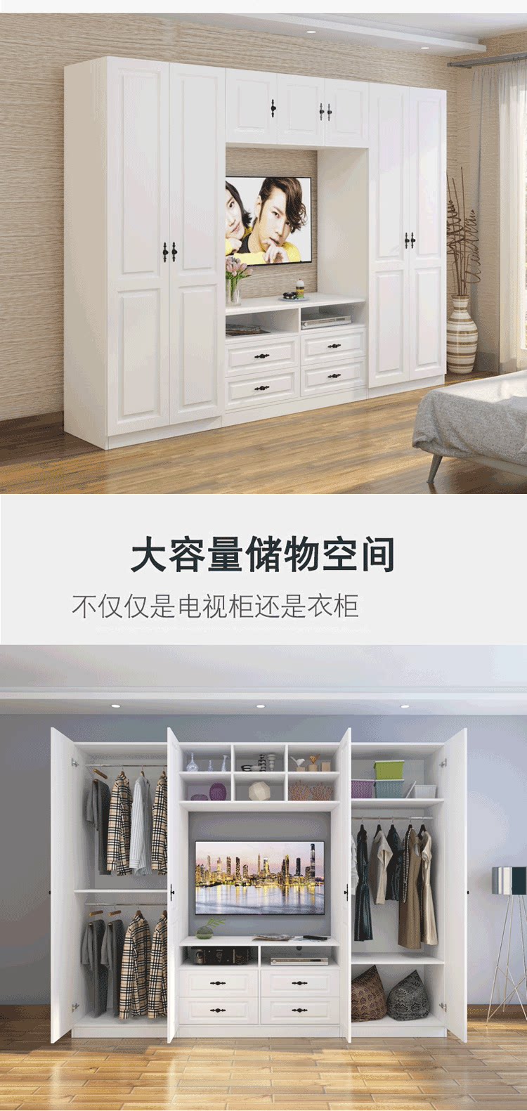 Простой современный телевизионный шкаф гардероб спальня в целом