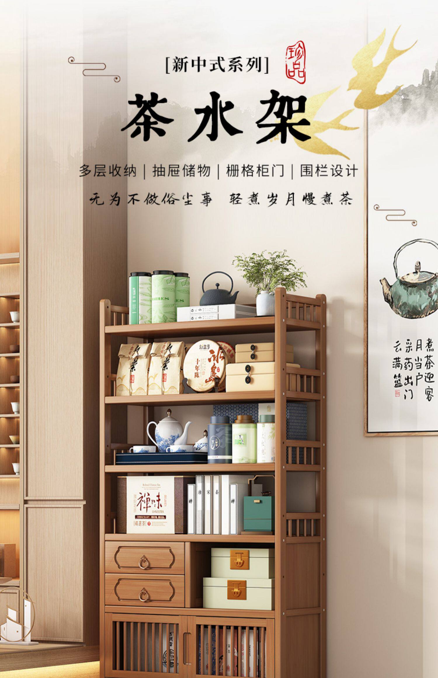 Чай из натурального дерева, стенд, чайный сервиз, чайная чашка, система хранения