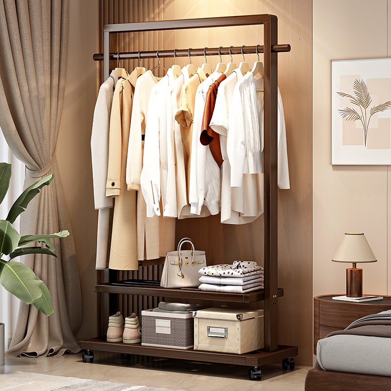 Вешалка приземляется в спальне сплошной деревянной стойки, висящая вешалка с колесами, висящей одежду, чтобы надеть на полку висящую одежду