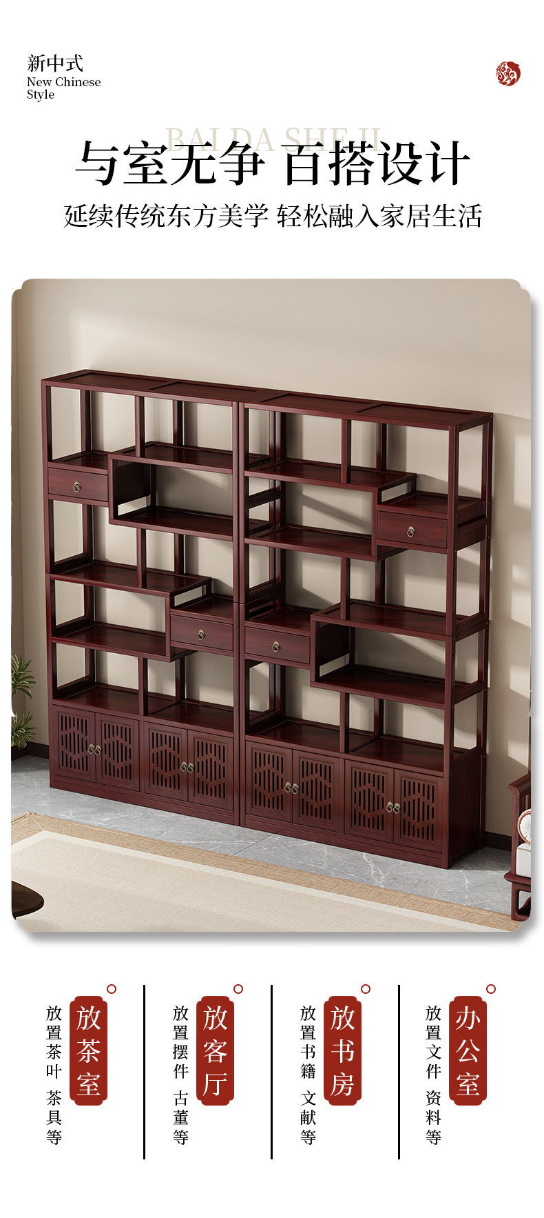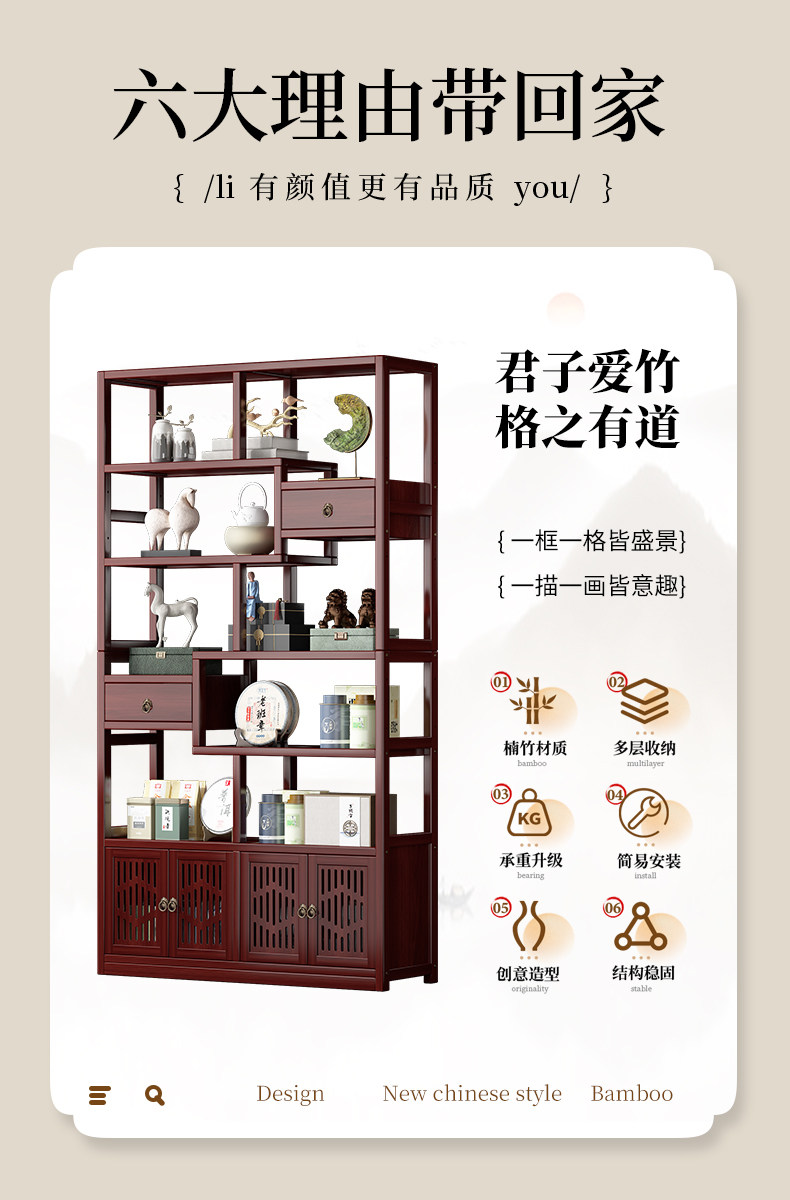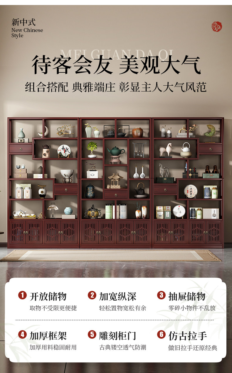 Новый китайский стиль Bo Древнее хранение шельфа чайная комната