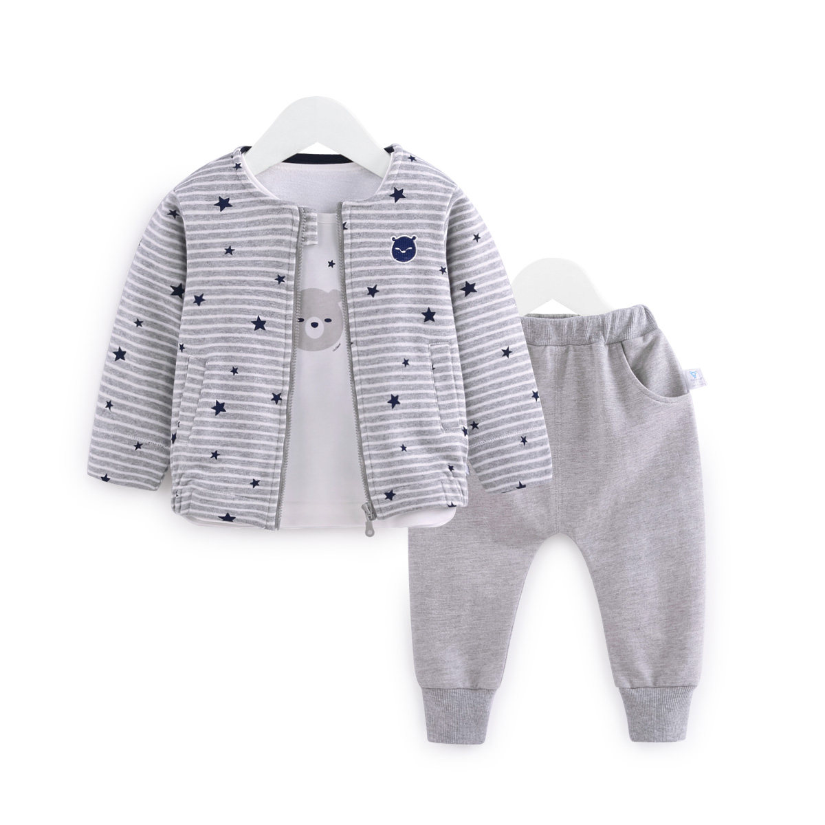 Детский лонгслив, мультяшный комплект подходит для мужчин и женщин для девочек, 3 предмета, 0-1-3 лет