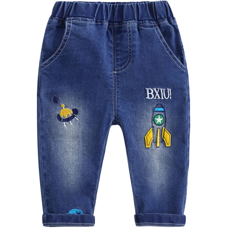 Детские джинсы для мальчиков, осенние штаны, с вышивкой, 3 лет