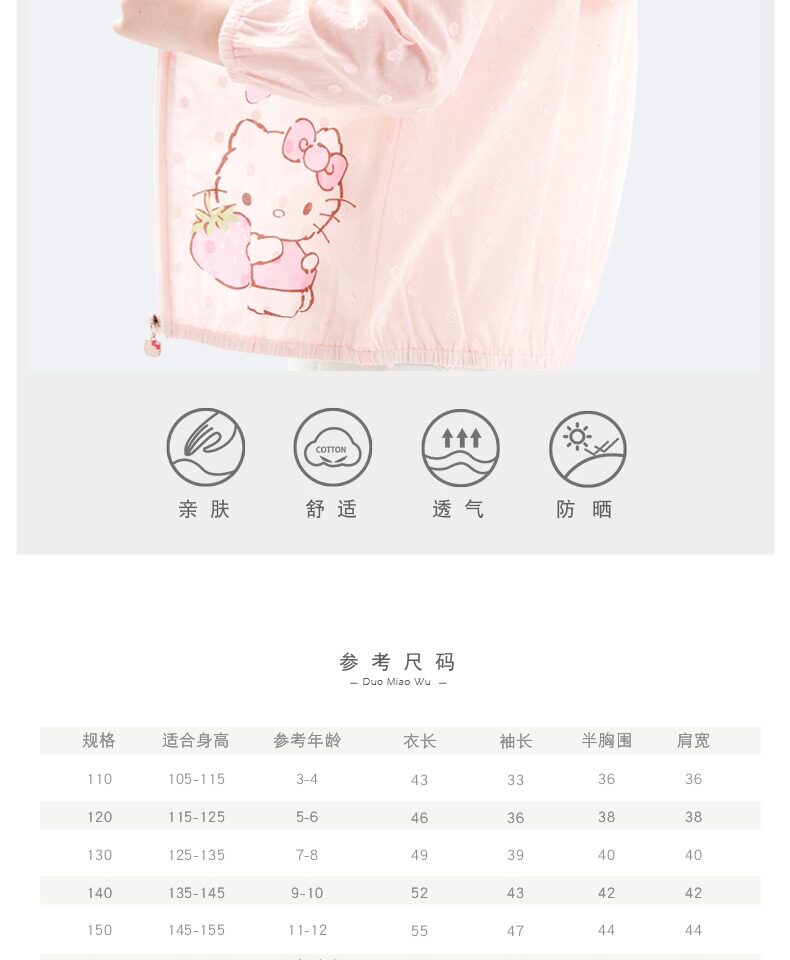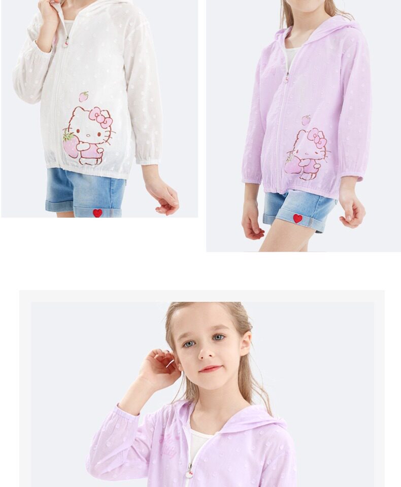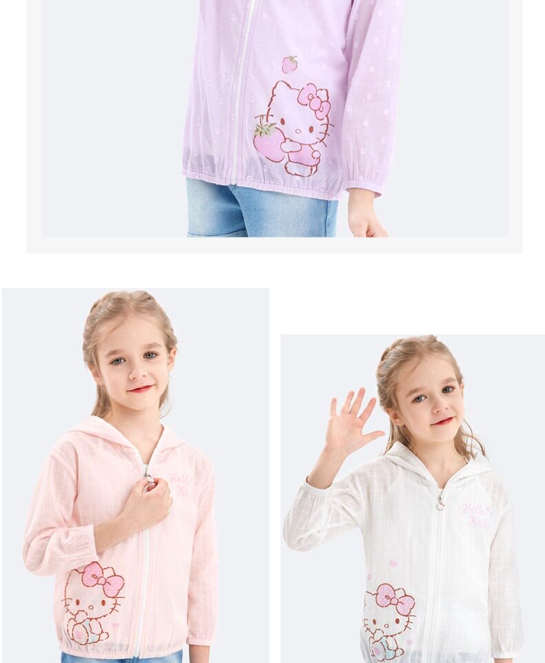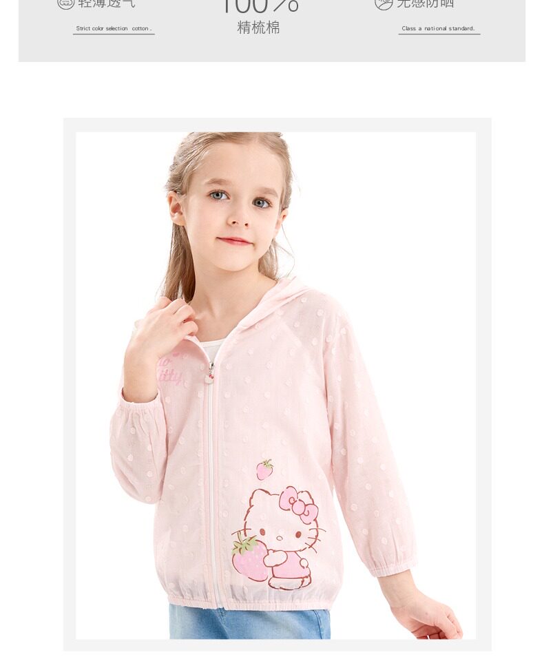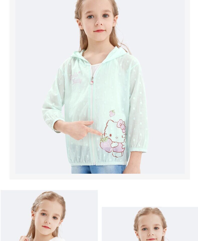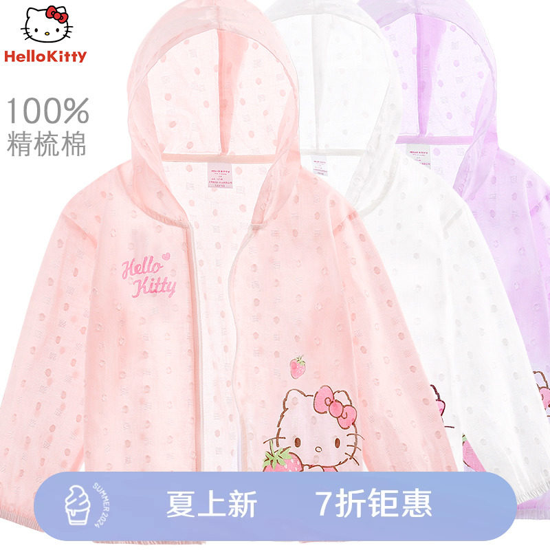 Hello kitty, солнцезащитный крем, летняя тонкая одежда для защиты от солнца, хлопковый детский дышащий кардиган, подходит для подростков