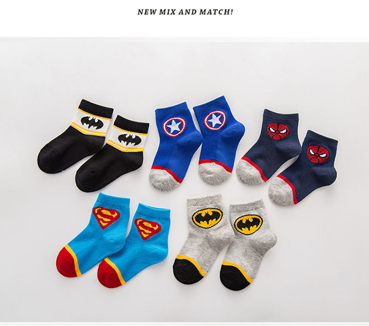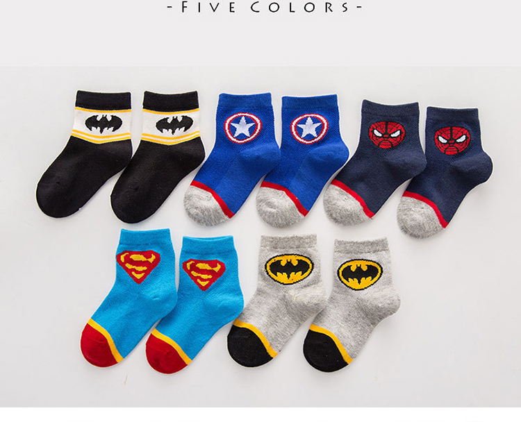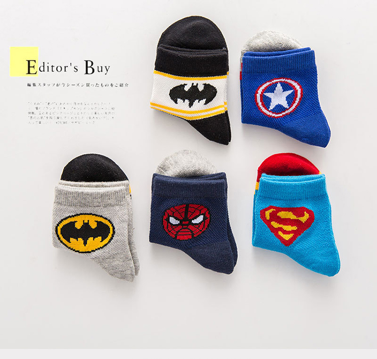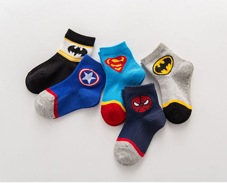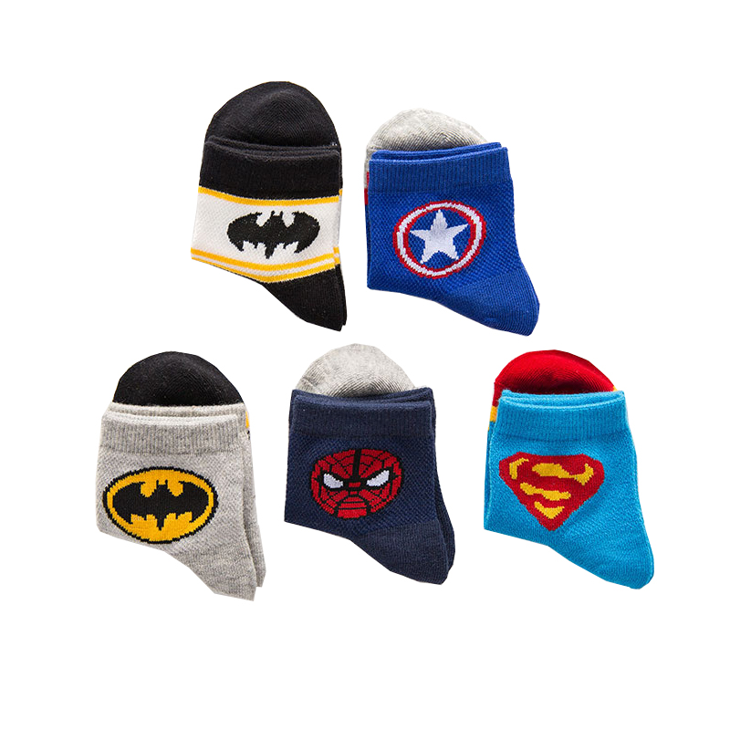 Летние детские хлопковые тонкие носки, герои подходит для мужчин и женщин, Супермен, паук, Железный Человек, капитан Америка