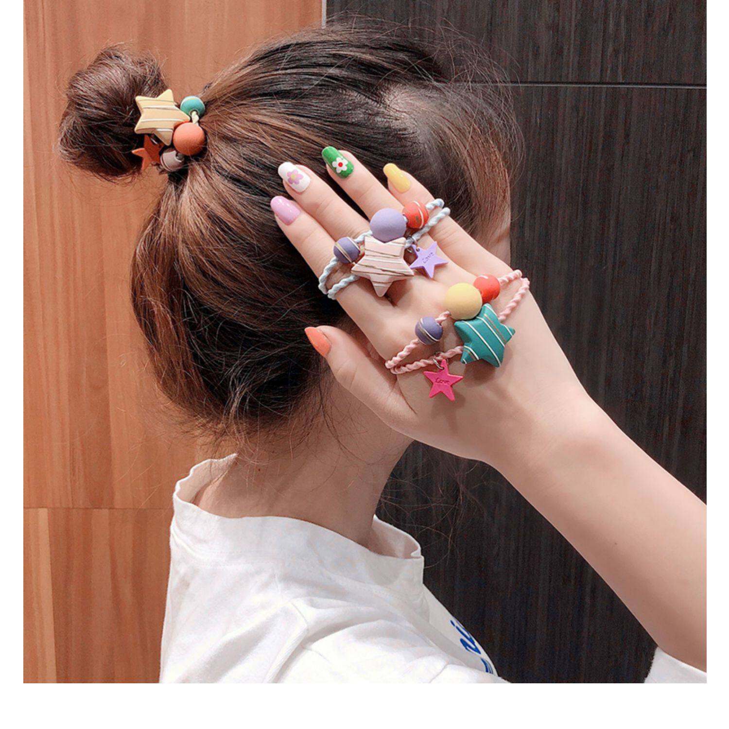 Корейская детская милая конфеты полосатая полоса полосатая полоса пентаграмма для волос веревка девочка голова головы веревка веревка завязать головку