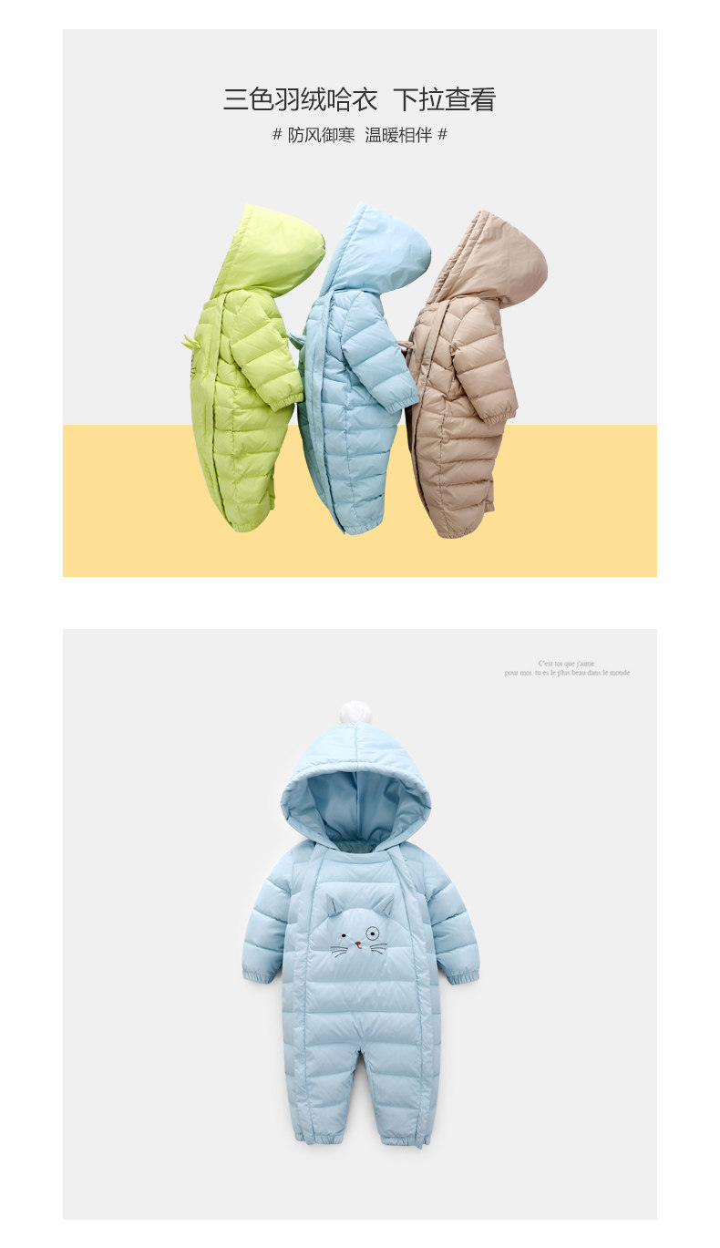 Боди для раннего возраста с пухом подходит для мужчин и женщин, удерживающий тепло пуховик для девочек, комбинезон, пижама, утиный пух