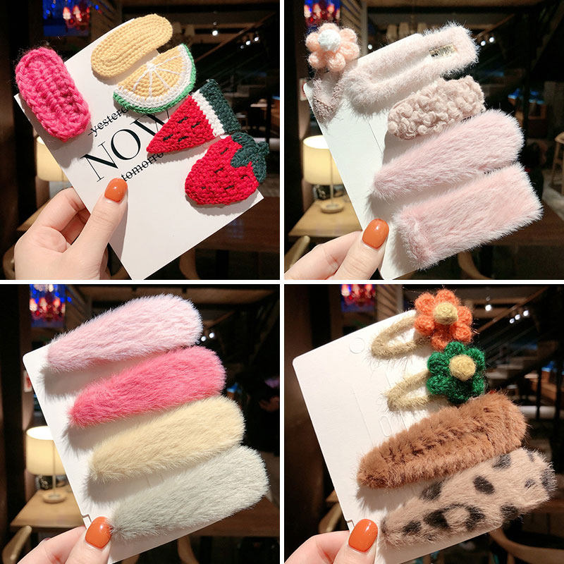 Корейская плюшевая карточка головной убор клип Детский сеть рыжево -боковые украшения для волос волос волосы с меховой зажим для девочки маленькая карта топ клип