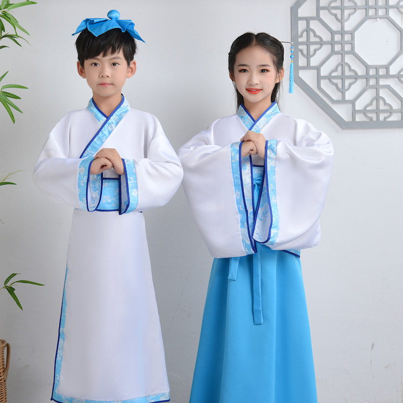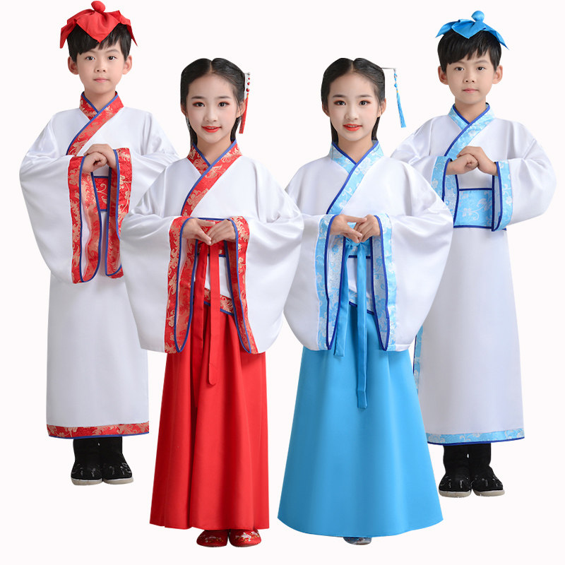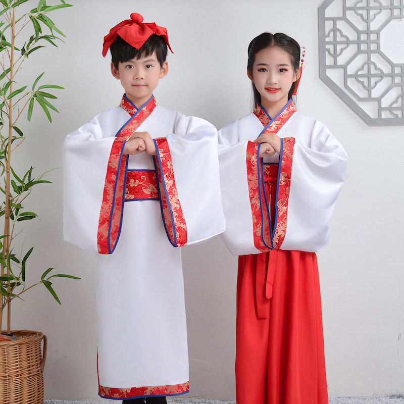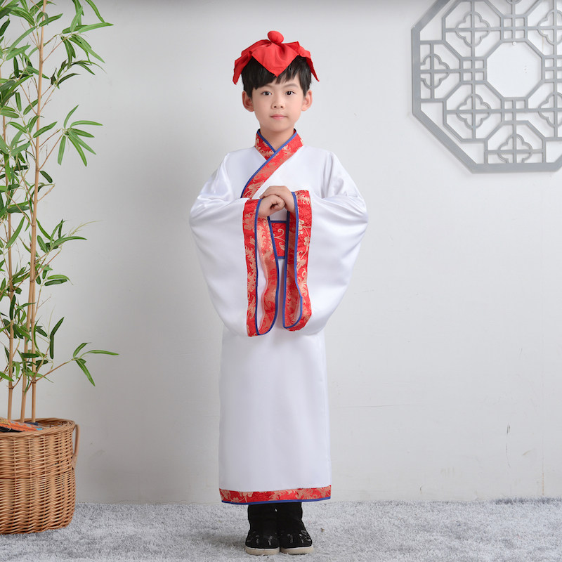 Детские китайские мужские персонажи Ханфу исполняются учениками, и Гу Ши читает китайские исполнения сыновного благочестия.