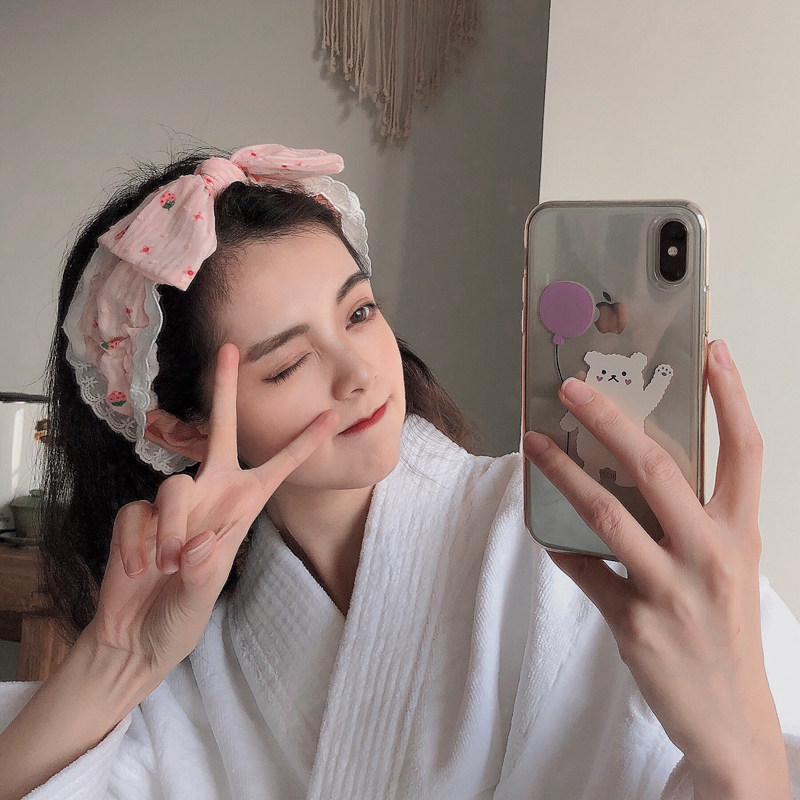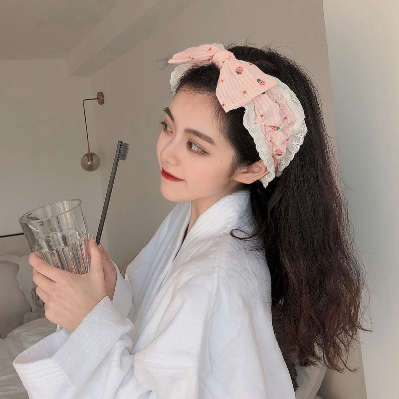 Милая клубника для умывания, универсальная повязка на голову с бантиком, шпильки для волос, ободок, аксессуар для волос, Южная Корея, простой и элегантный дизайн