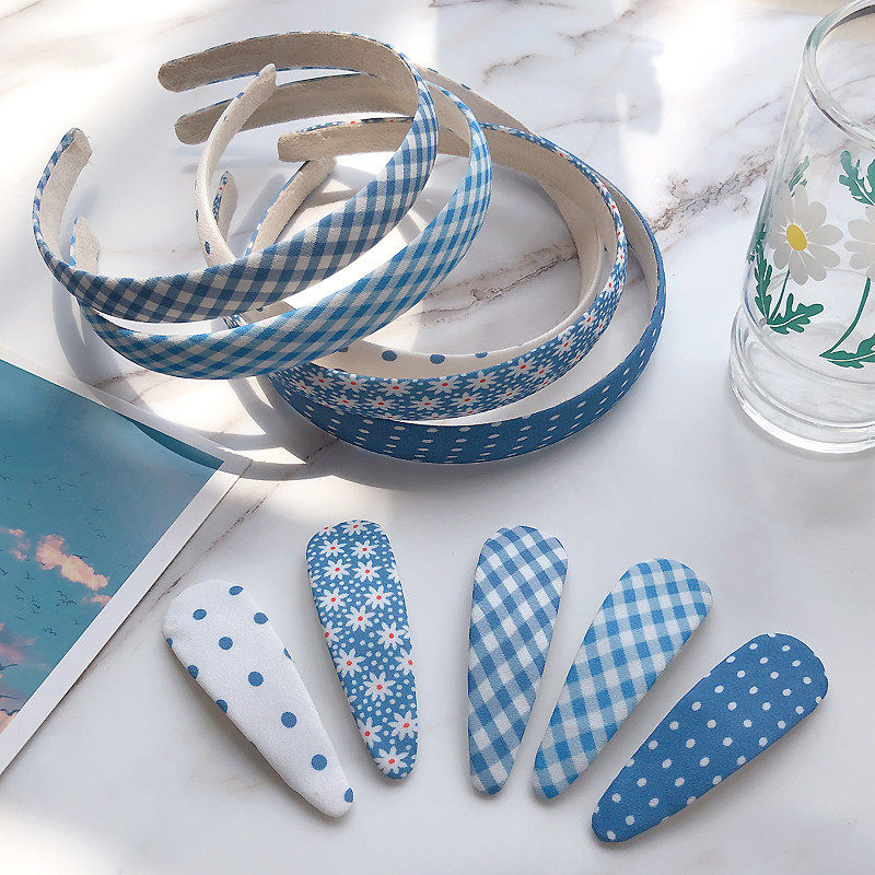 Синяя заколка для волос, нескользящий универсальный ободок, шпильки для волос, брендовый аксессуар для волос, цветочный принт