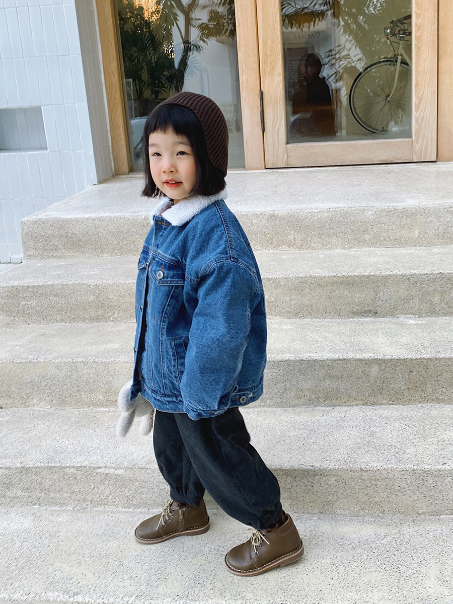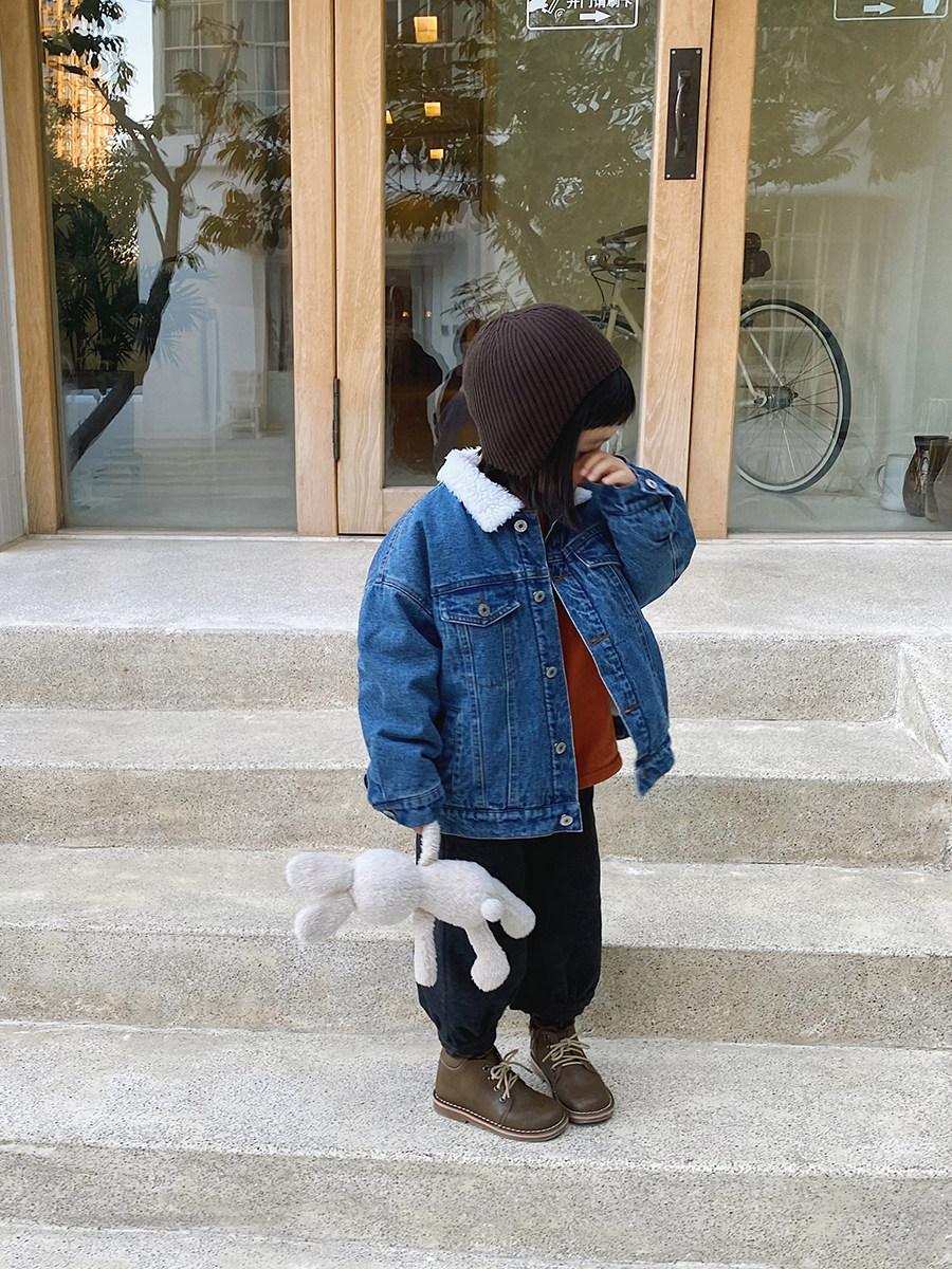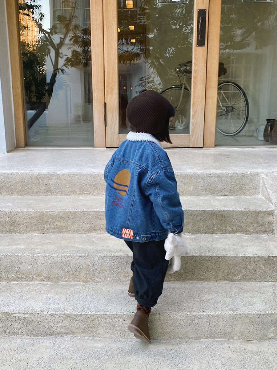 Детская флисовая джинсовая зимняя куртка для раннего возраста, увеличенная толщина