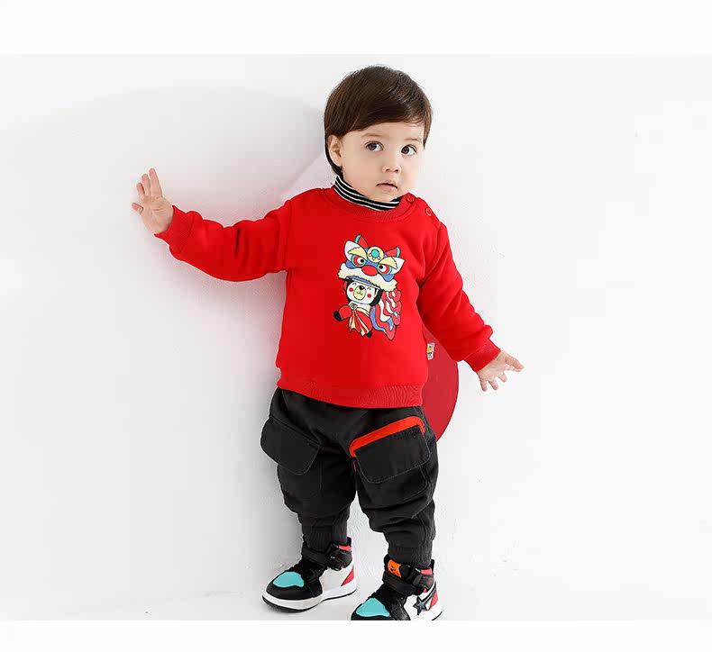 Детская зимняя базовая приятная телу толстовка для мальчиков, утепленная футболка, китайский стиль, 0-3 лет