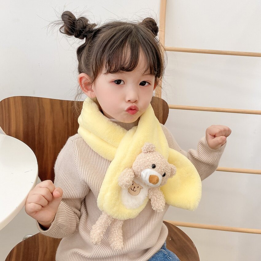 Детский милый демисезонный утепленный мультяшный шарф для девочек, с медвежатами, в корейском стиле, с защитой шеи