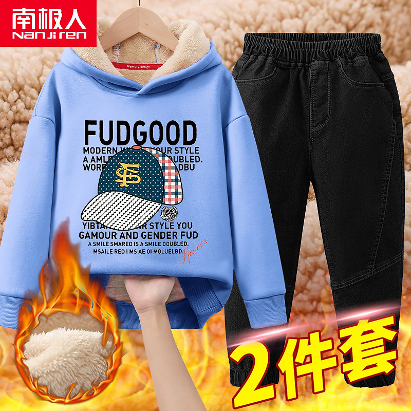 Утепленный комплект для мальчиков, форма, демисезонный детский зимний синий пуховик, подходит для подростков, увеличенная толщина, в западном стиле