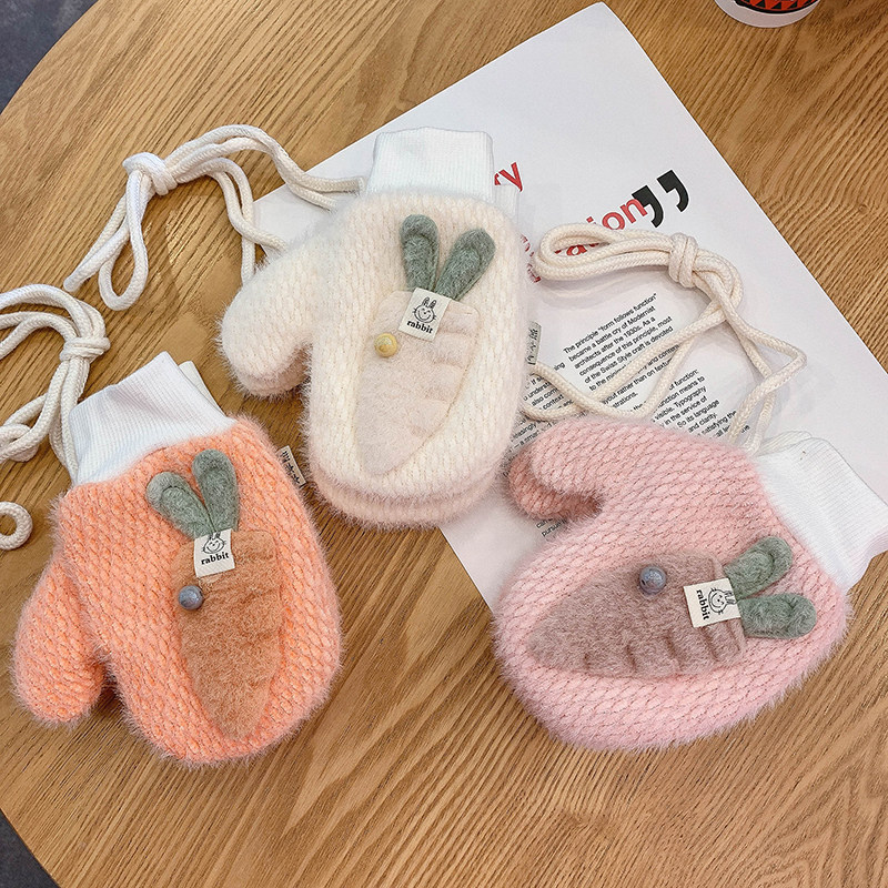 Зимние детские удерживающие тепло мультяшные морковные перчатки для принцессы для мальчиков