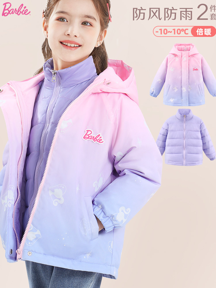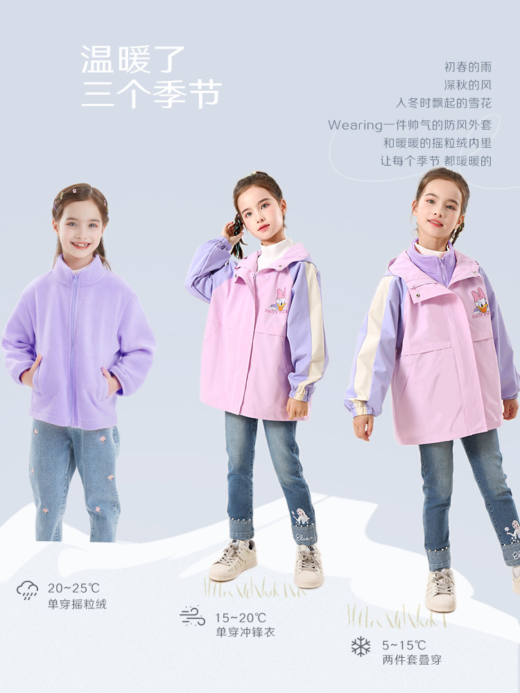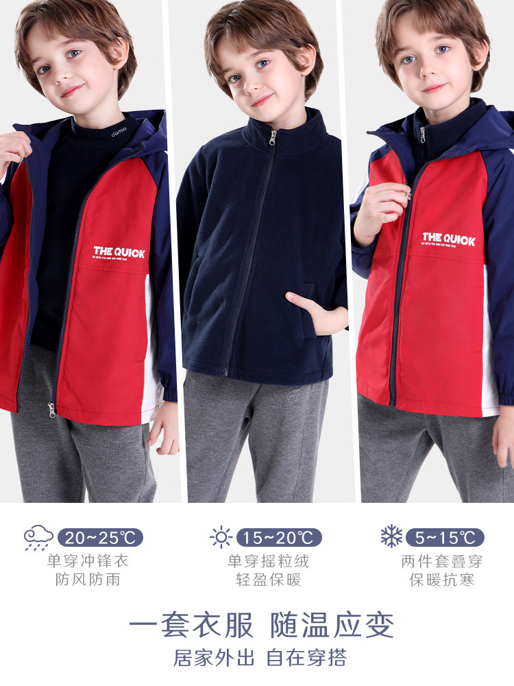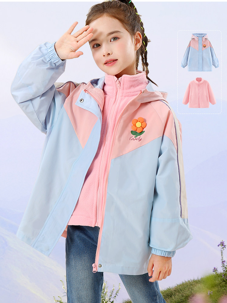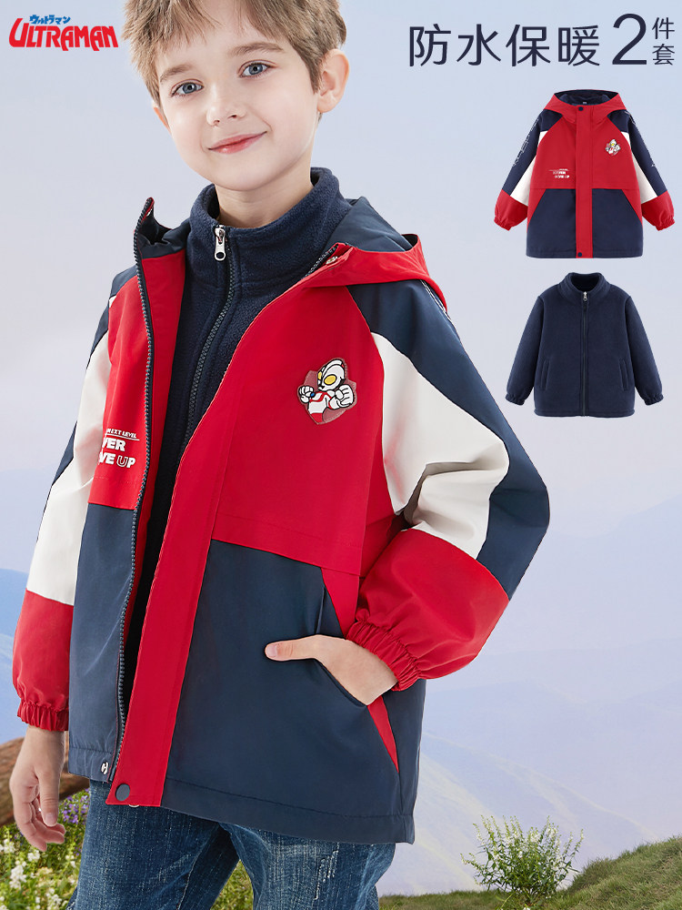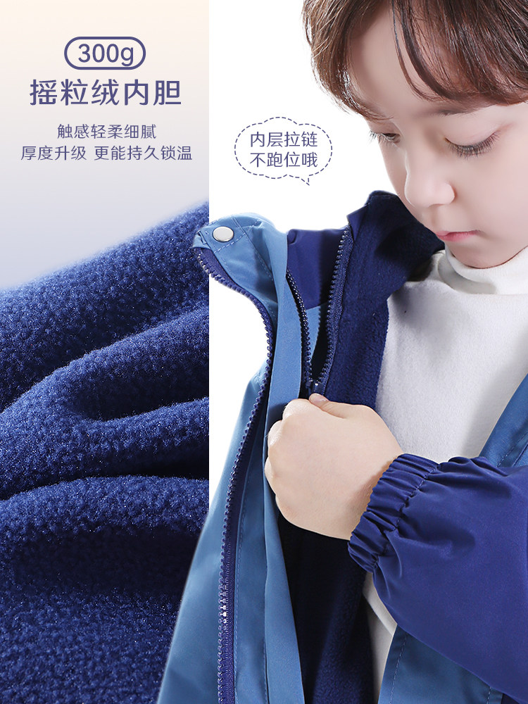 Детская куртка, ветрозащитный пуховик, бархатный вкладыш подходит для мужчин и женщин, «три в одном», увеличенная толщина