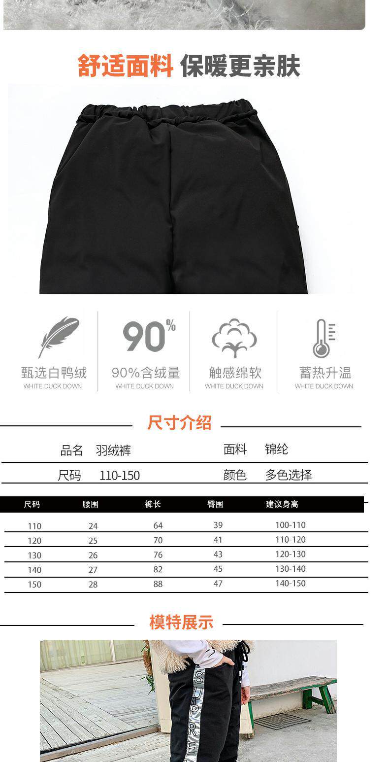 Детские легкие и тонкие утепленные удерживающие тепло штаны с пухом подходит для мужчин и женщин, в западном стиле, утиный пух