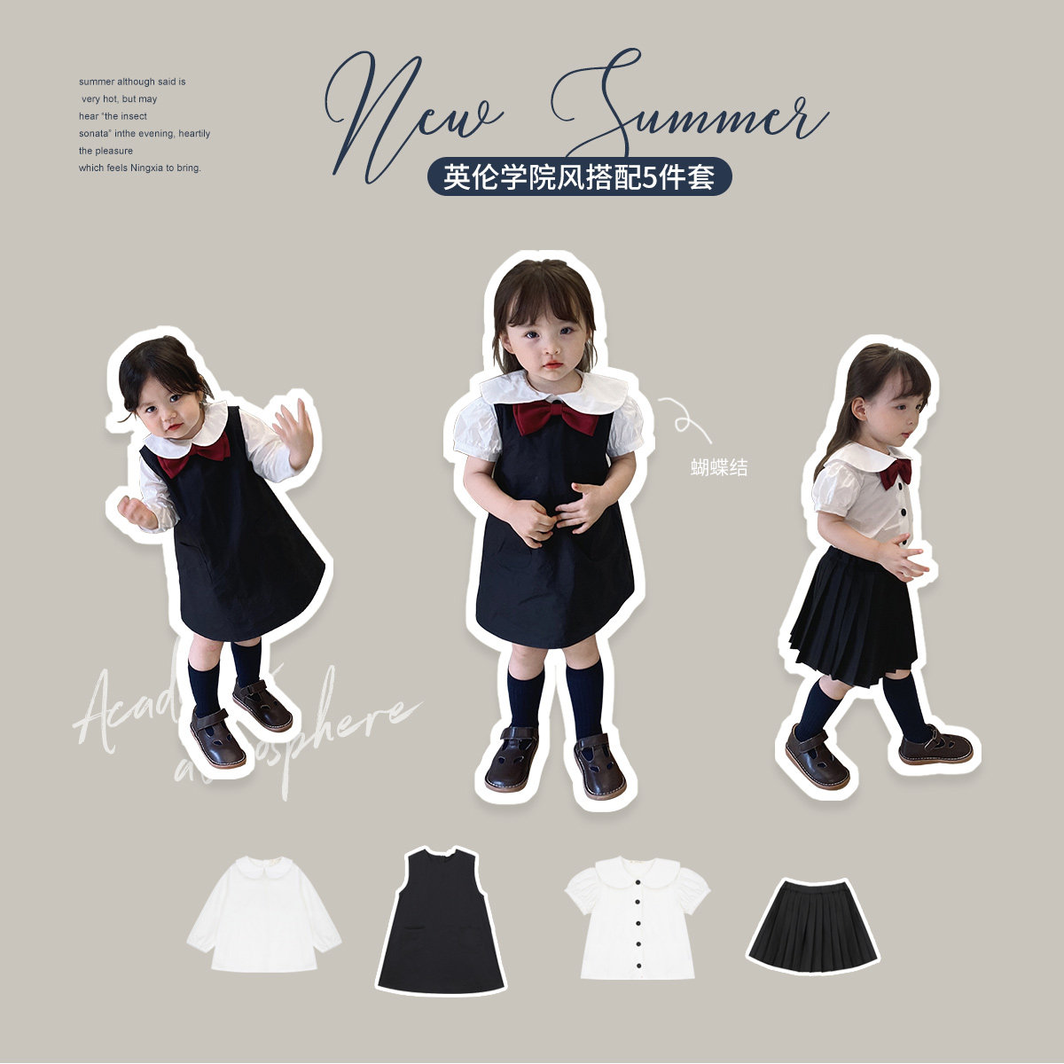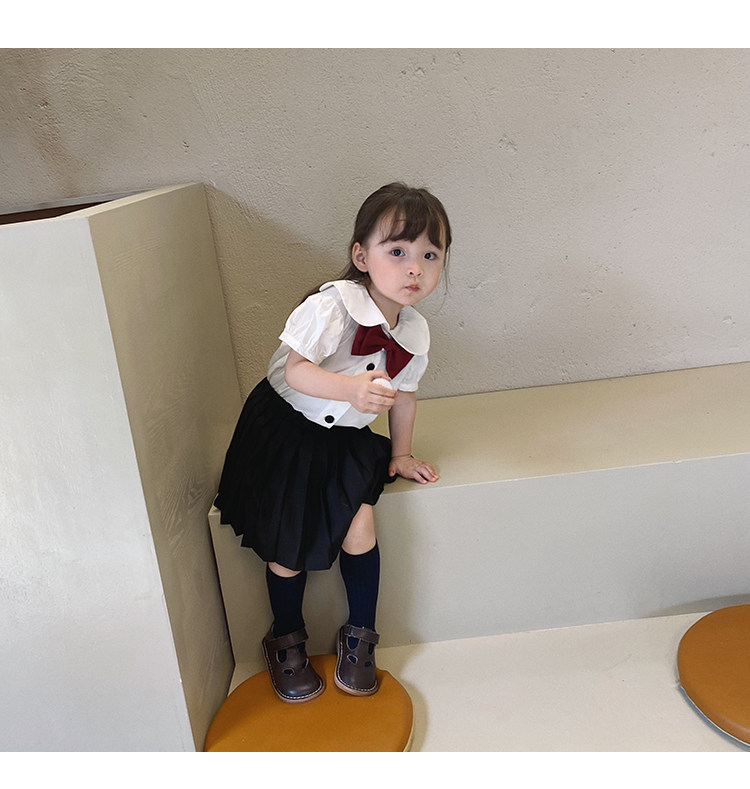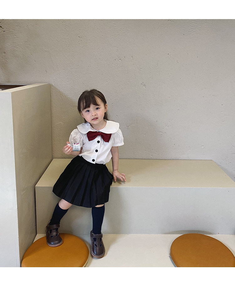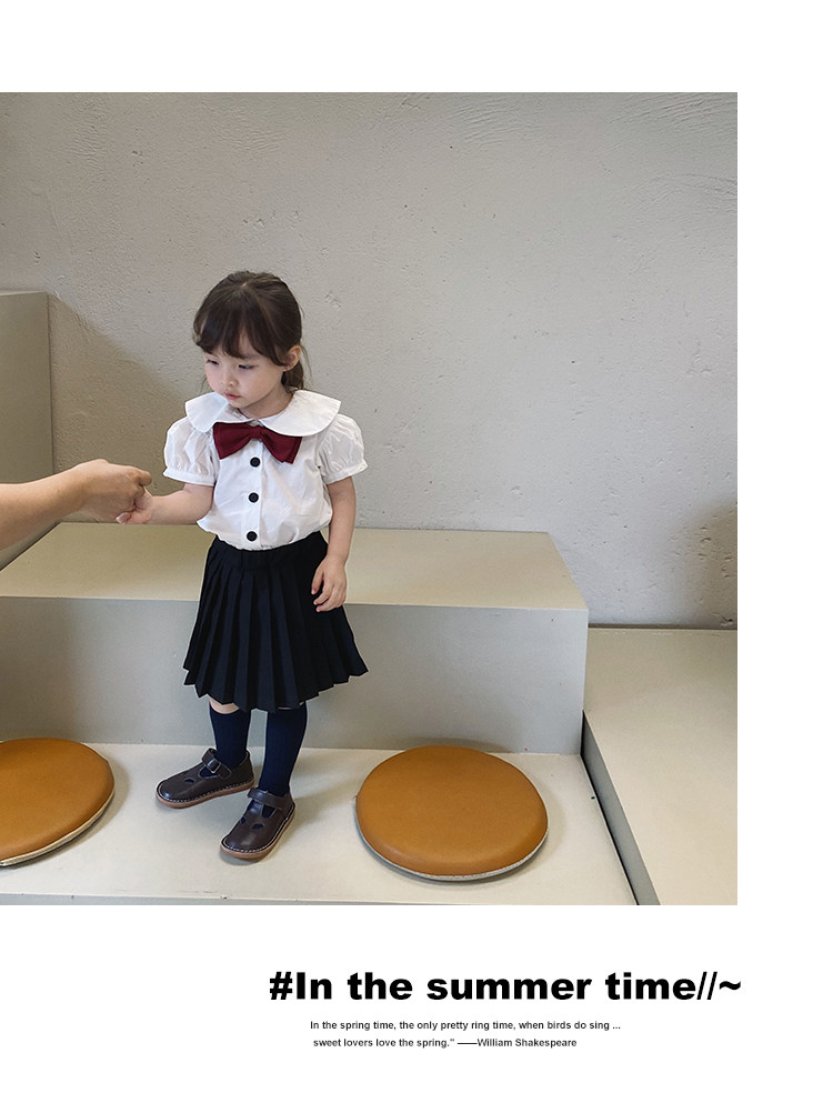 Студенческая юбка в складку, тонкий детский комплект, летнее платье без рукавов, рубашка, полный комплект