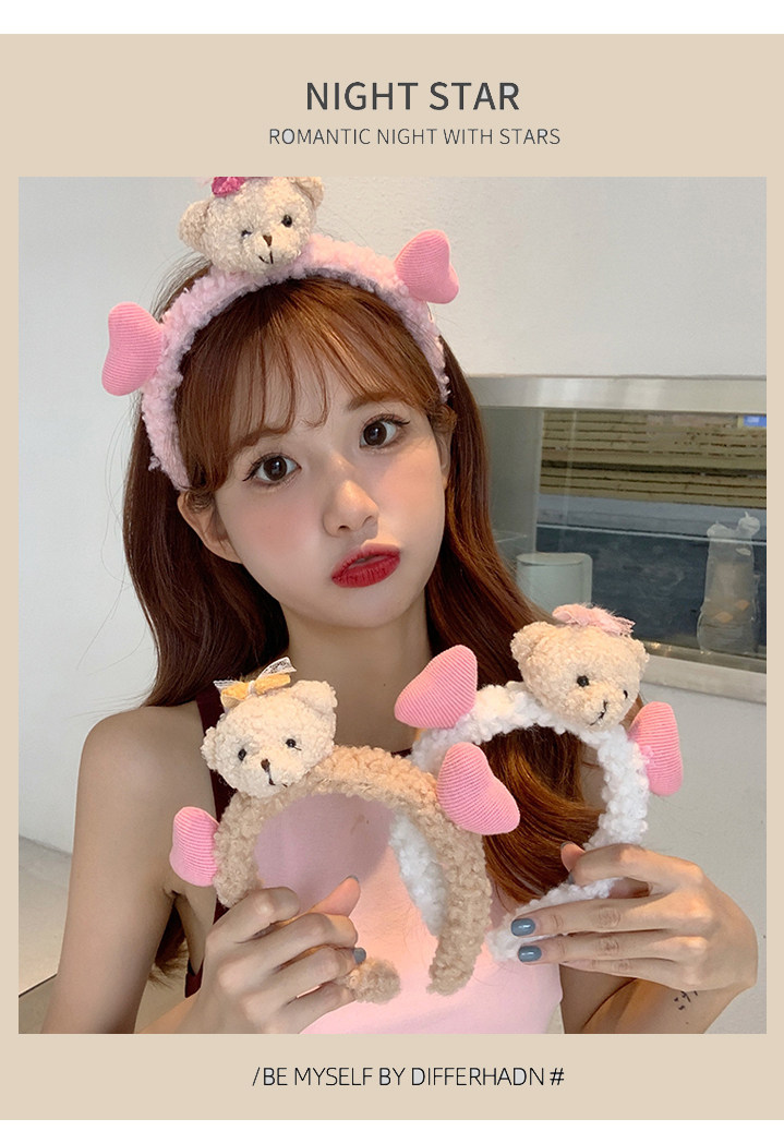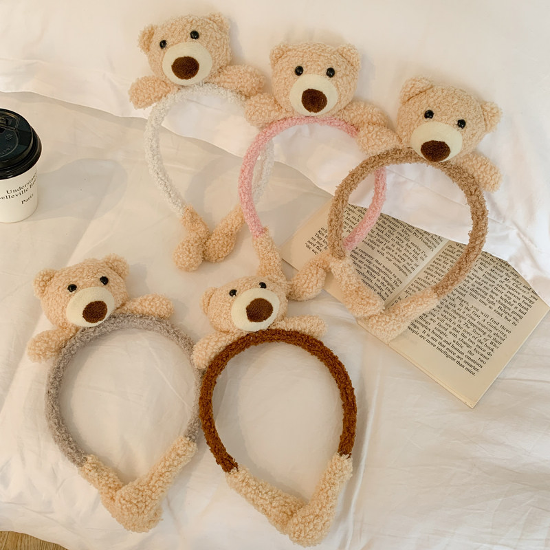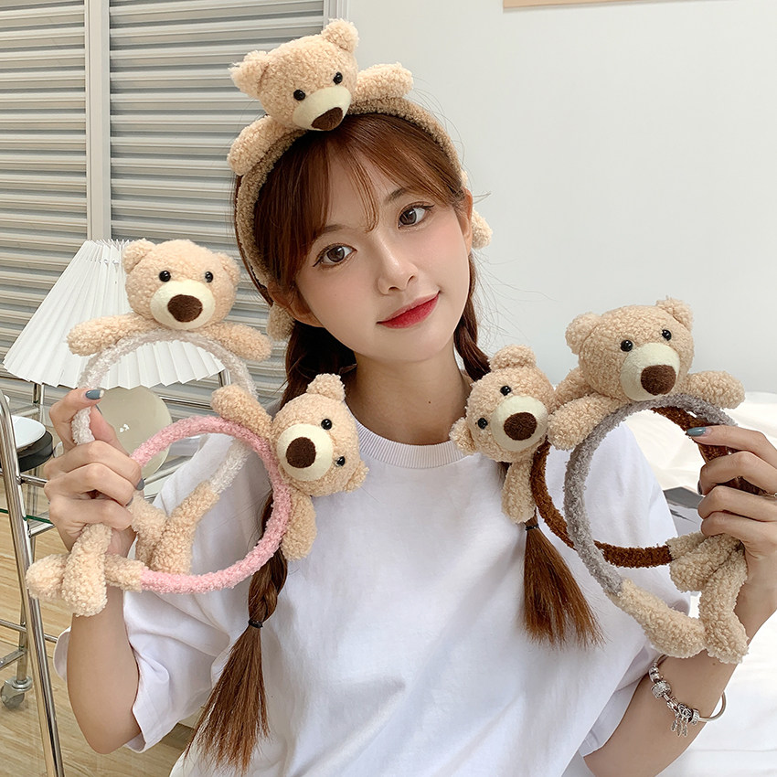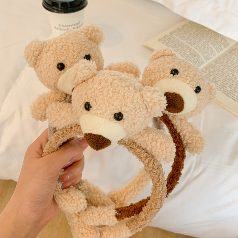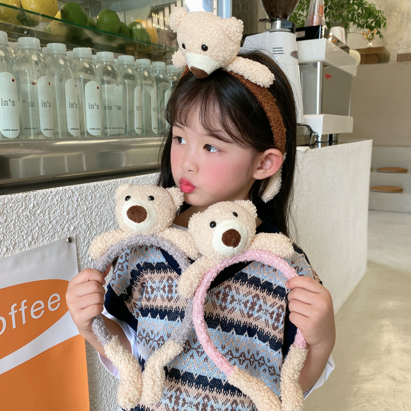 Детский демисезонный ободок, плюшевые безвредные милые детские шпильки для волос, мультяшный аксессуар для волос, с медвежатами