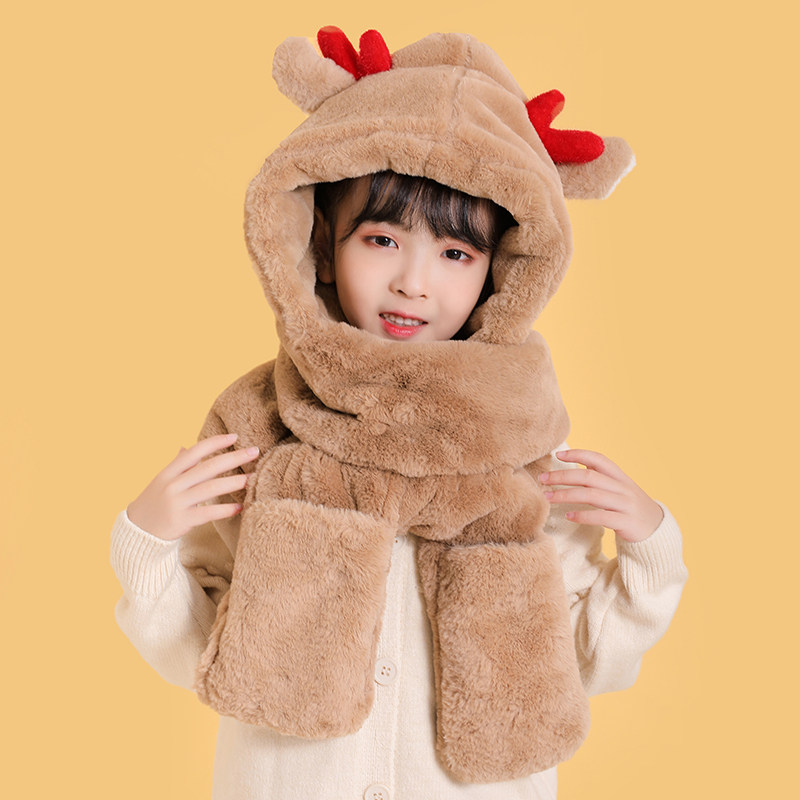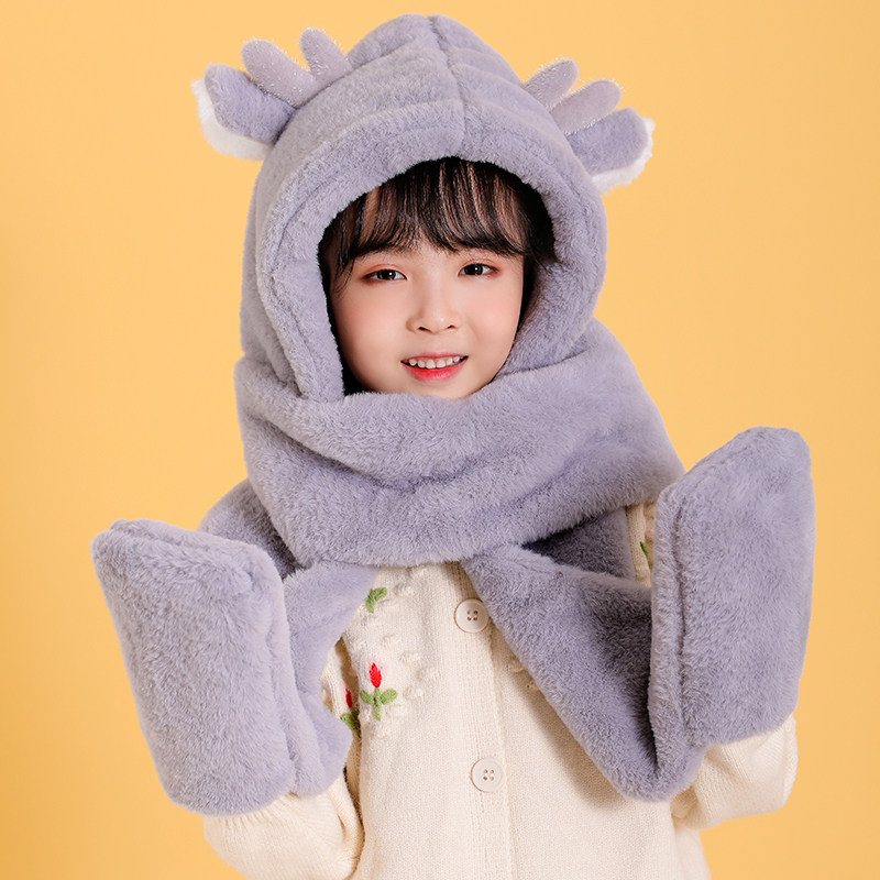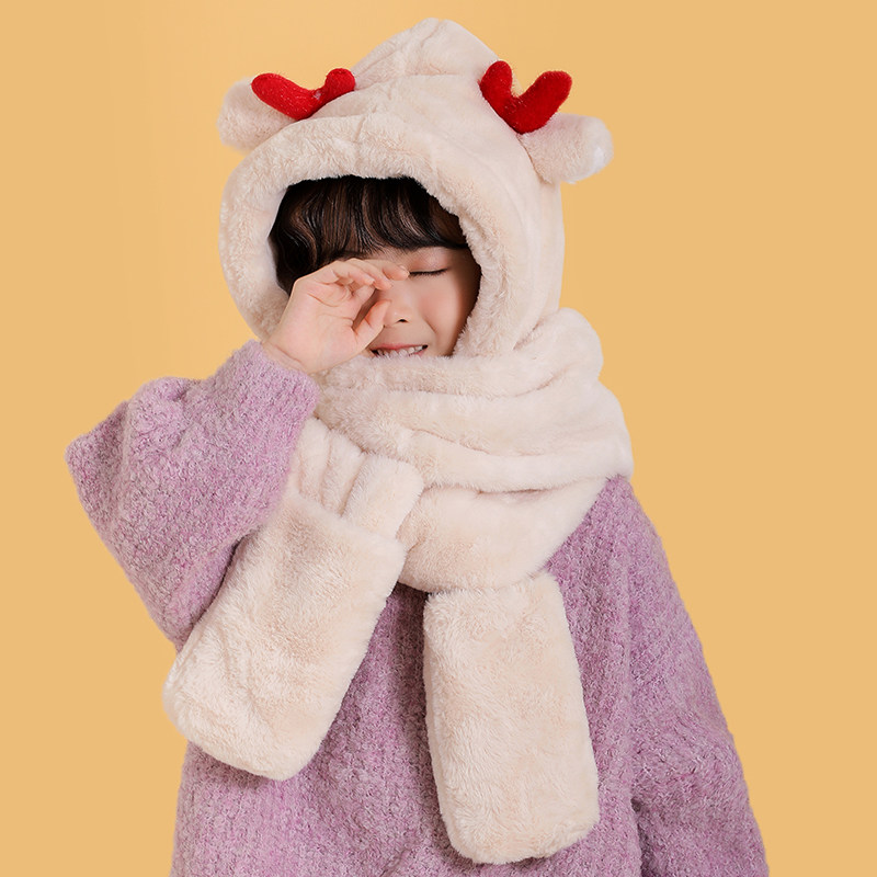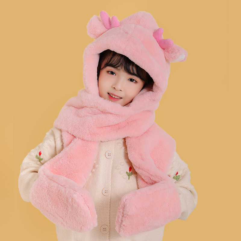 Демисезонная универсальная шапка, шарф, перчатки, детский зимний бархатный удерживающий тепло комплект, 3 предмета