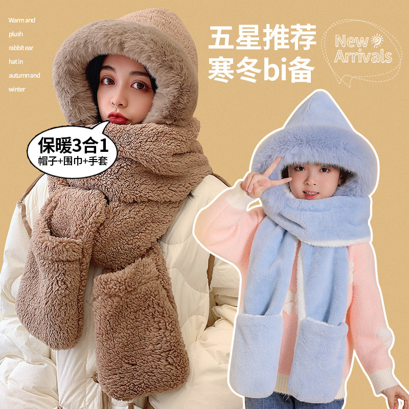 Детская зимняя универсальная шапка, шарф, зимний комплект, удерживающие тепло бархатные перчатки, семейный стиль, 3 предмета, коллекция 2021