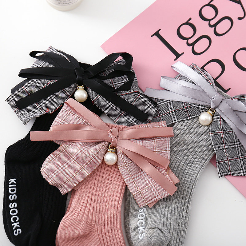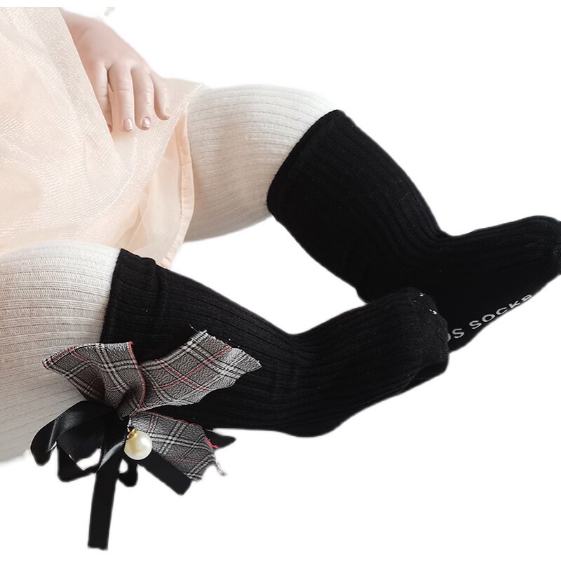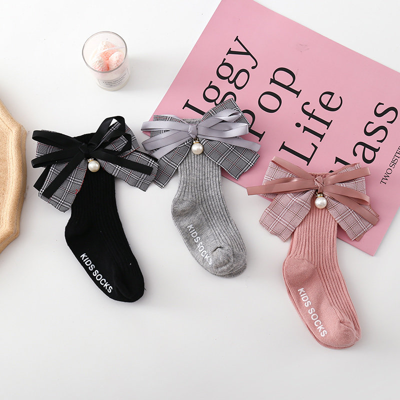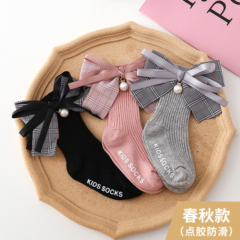 Осенние носки, детские нескользящие гольфы с бантиком, в корейском стиле, в западном стиле, средней длины