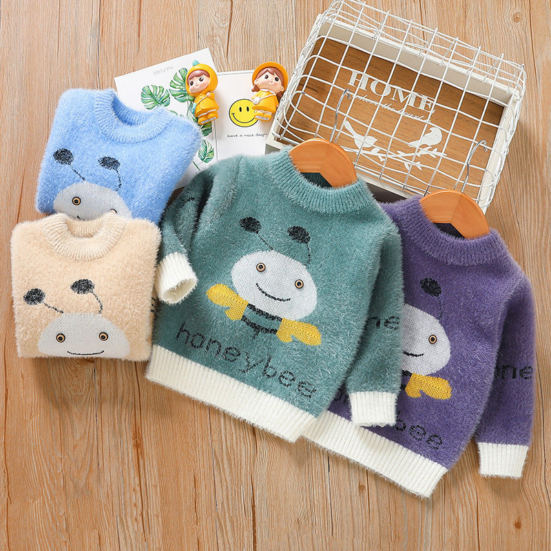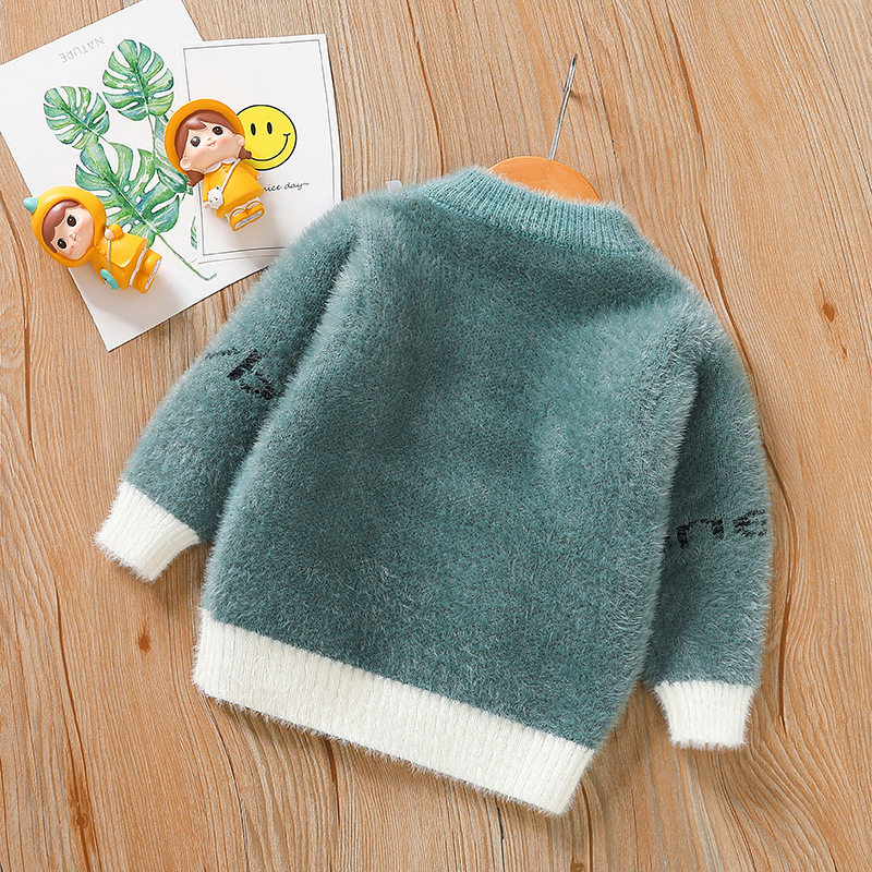 Демисезонный милый свитер для мальчиков, удерживающий тепло трикотажный лонгслив с круглым воротником, удерживающая тепло куртка