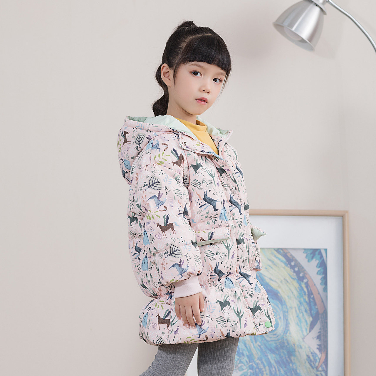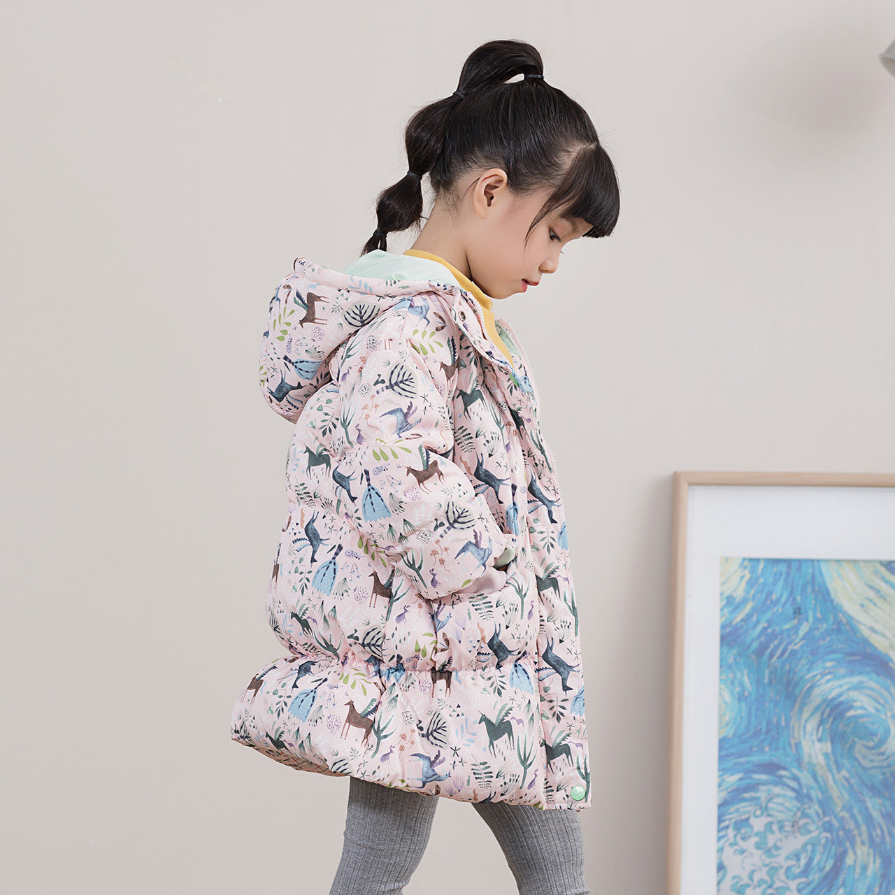 Демисезонный дизайнерский удерживающий тепло пуховик, принт, детская одежда