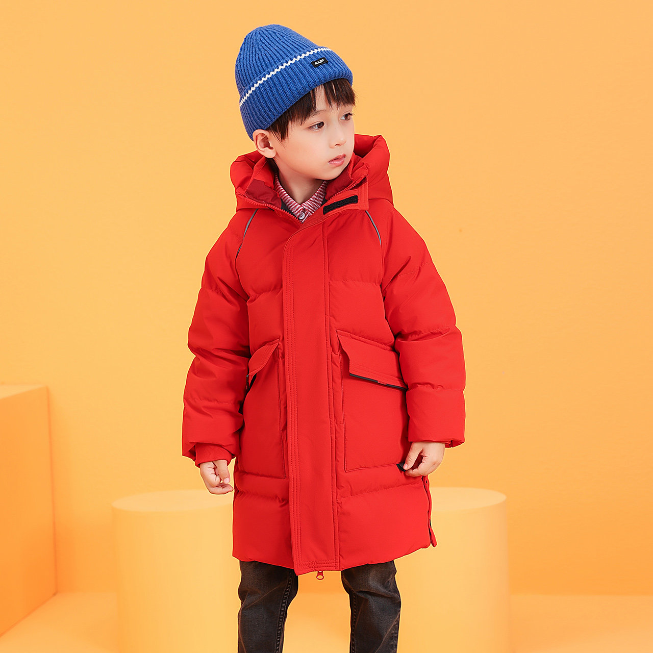 Демисезонный дизайнерский трендовый ветрозащитный детский пуховик для мальчиков для отдыха с капюшоном, в корейском стиле