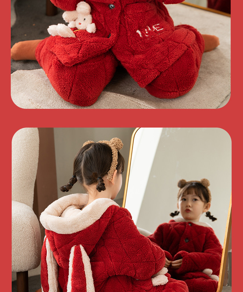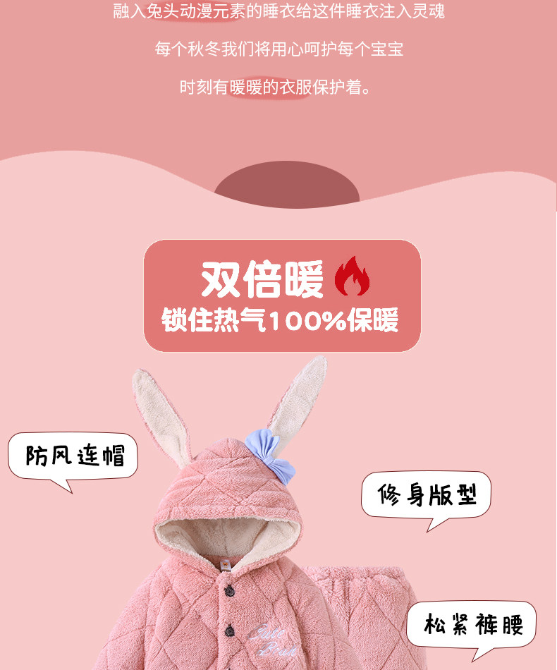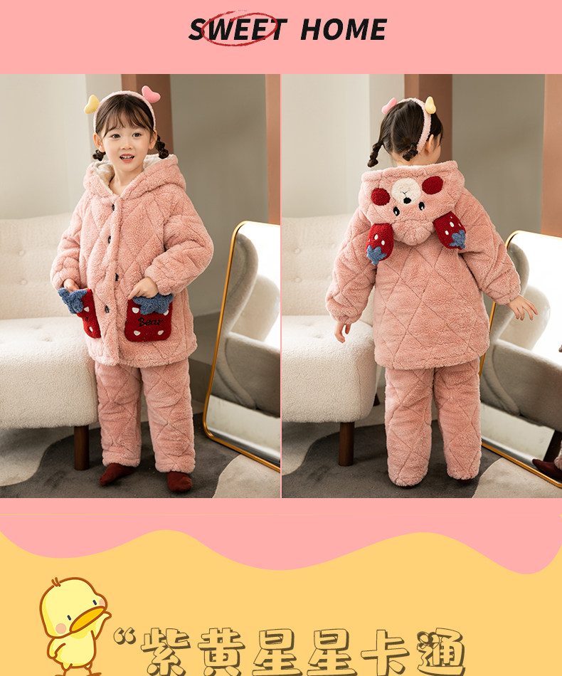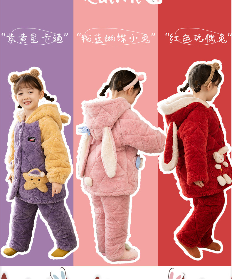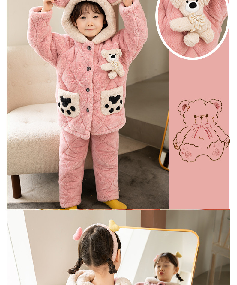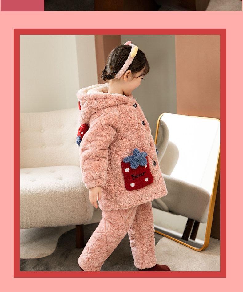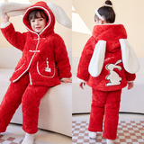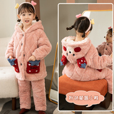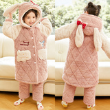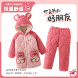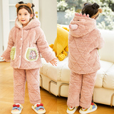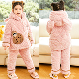 Зимняя коралловая бархатная детская фланелевая утепленная стеганая пижама