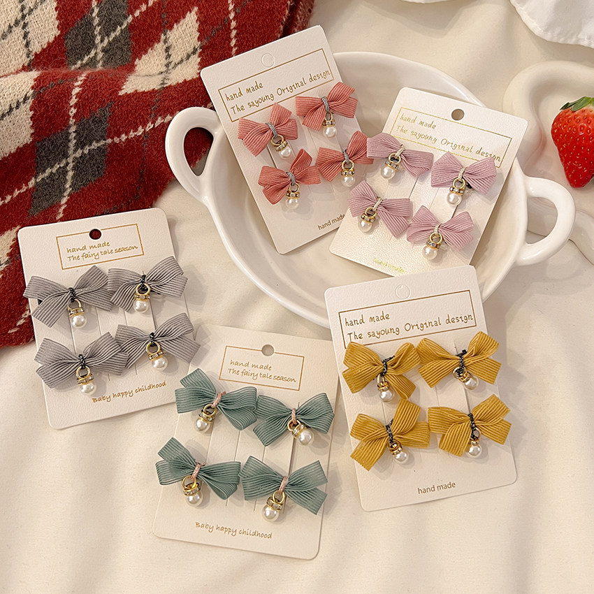 Детский аксессуар для волос, бусины с бантиком, заколка для волос, шпильки для волос для девочек, 2 пары, коллекция 2022, популярно в интернете